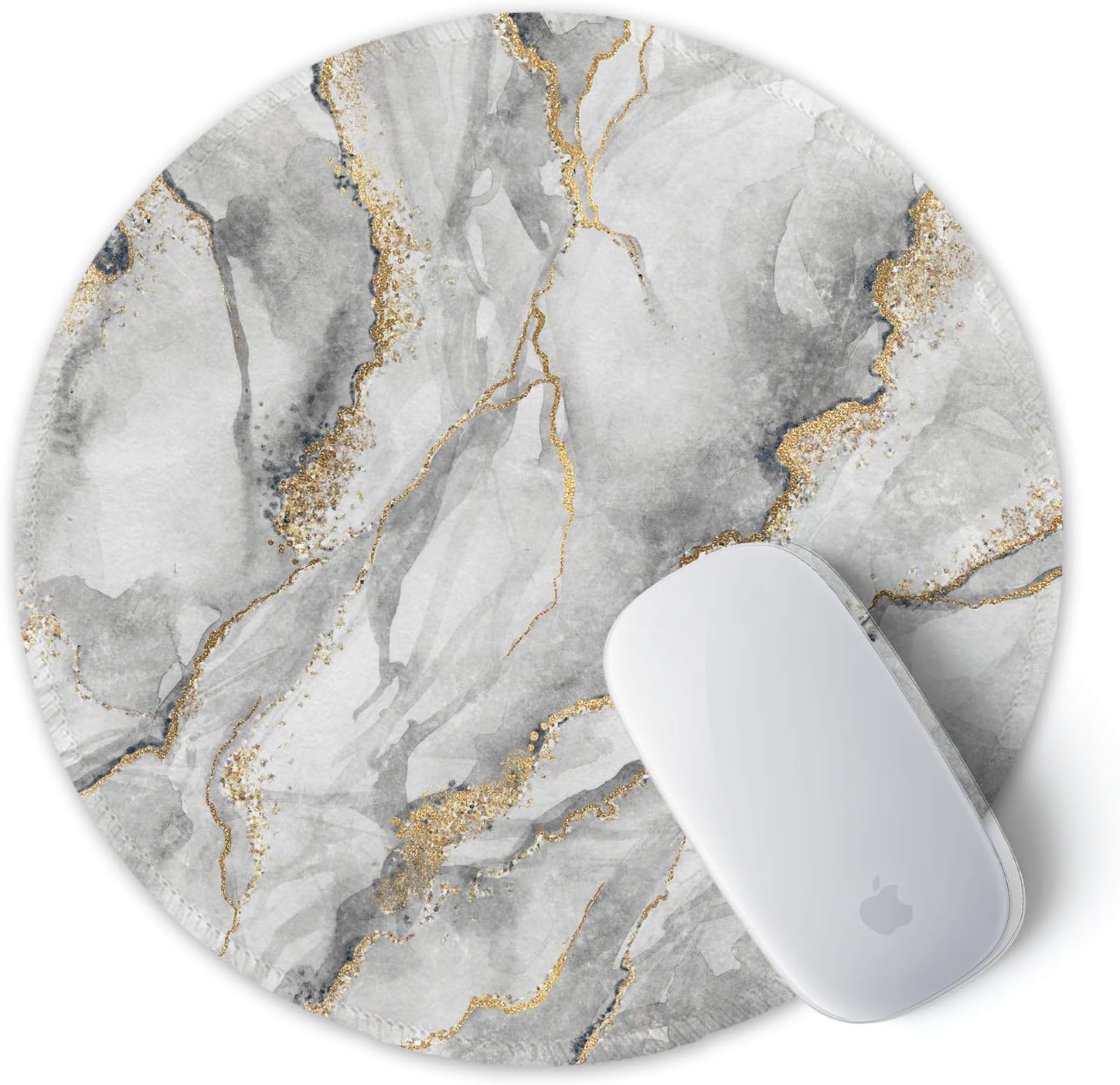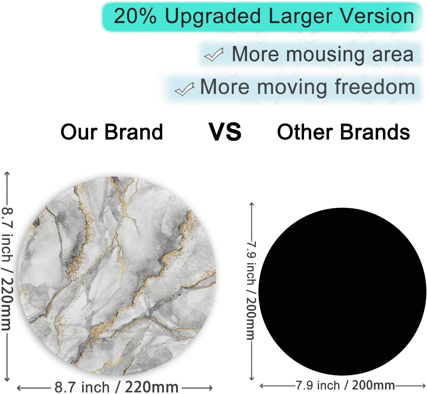 ITNRSIIET Round Mouse Pad with Stitched Edge Premium-Textured Waterproof Non-Slip Rubber Base Desktop Protection Mat Diameter 8.7 inches, Gray Marbling