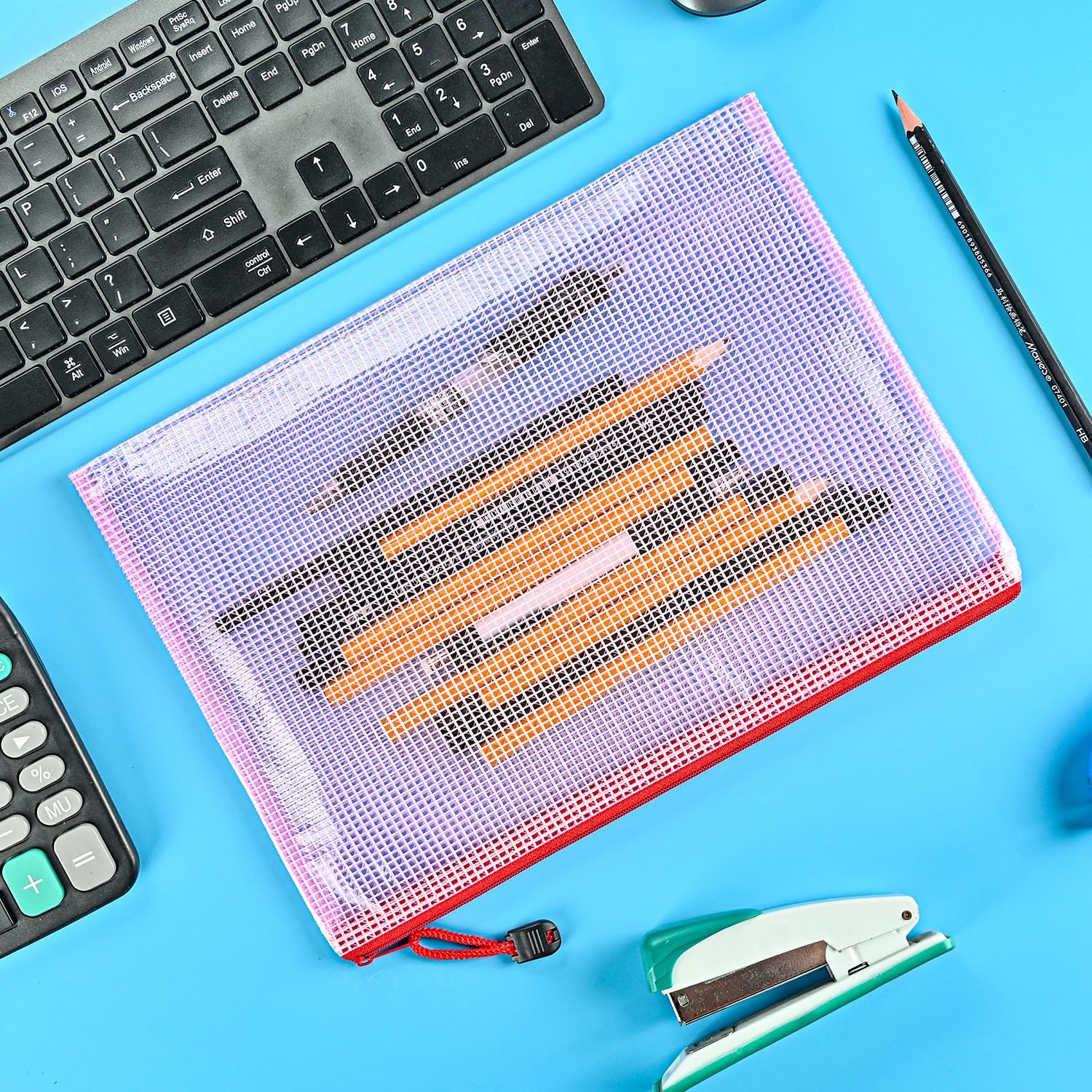 - 10 PCS Plastic mesh zipper bags, 11.4 x 8.2 inch B5 size. Widely used in office supplies, school, home daily life, hospital and travel. These pouches could meet your needs in all ways