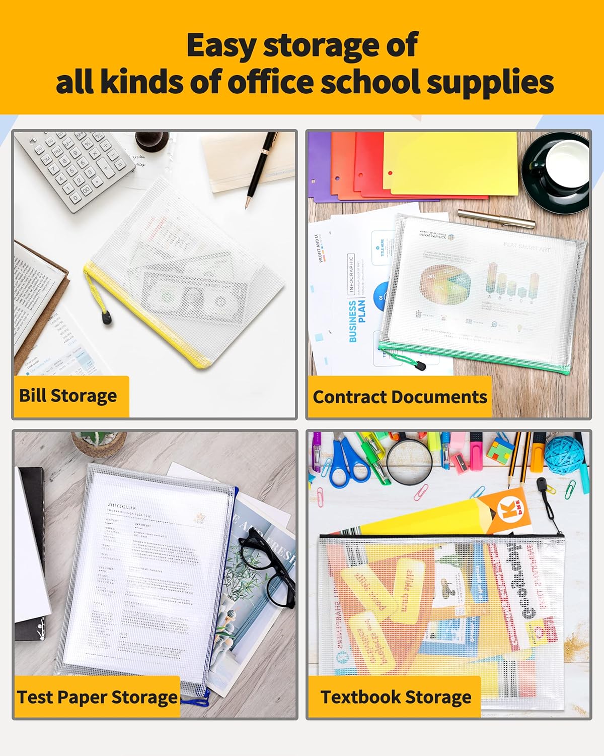 - DURABLE & PORTABLE: SUNEE zipper file bags are made of thick vinyl material, water-resistant, moisture-resistant. Each metal zipper is equipped with a rope loop, which is strong and durable. It can be used as a hanging ring and ready to hang