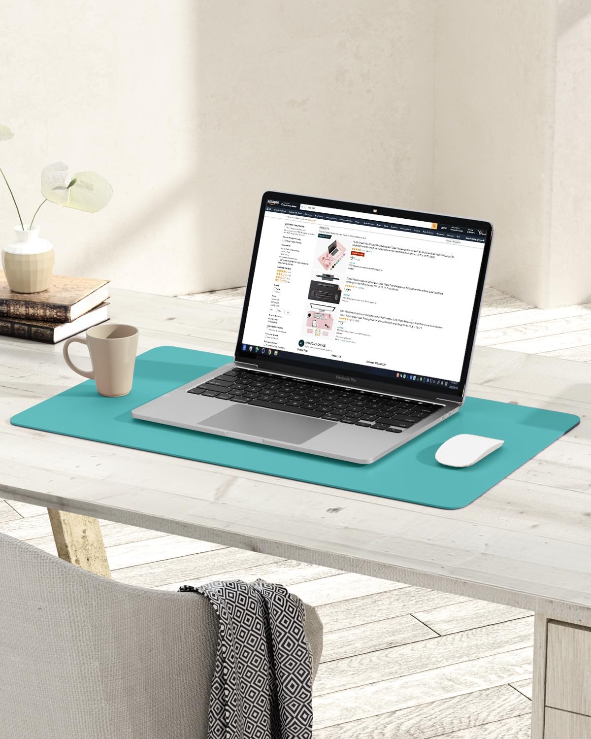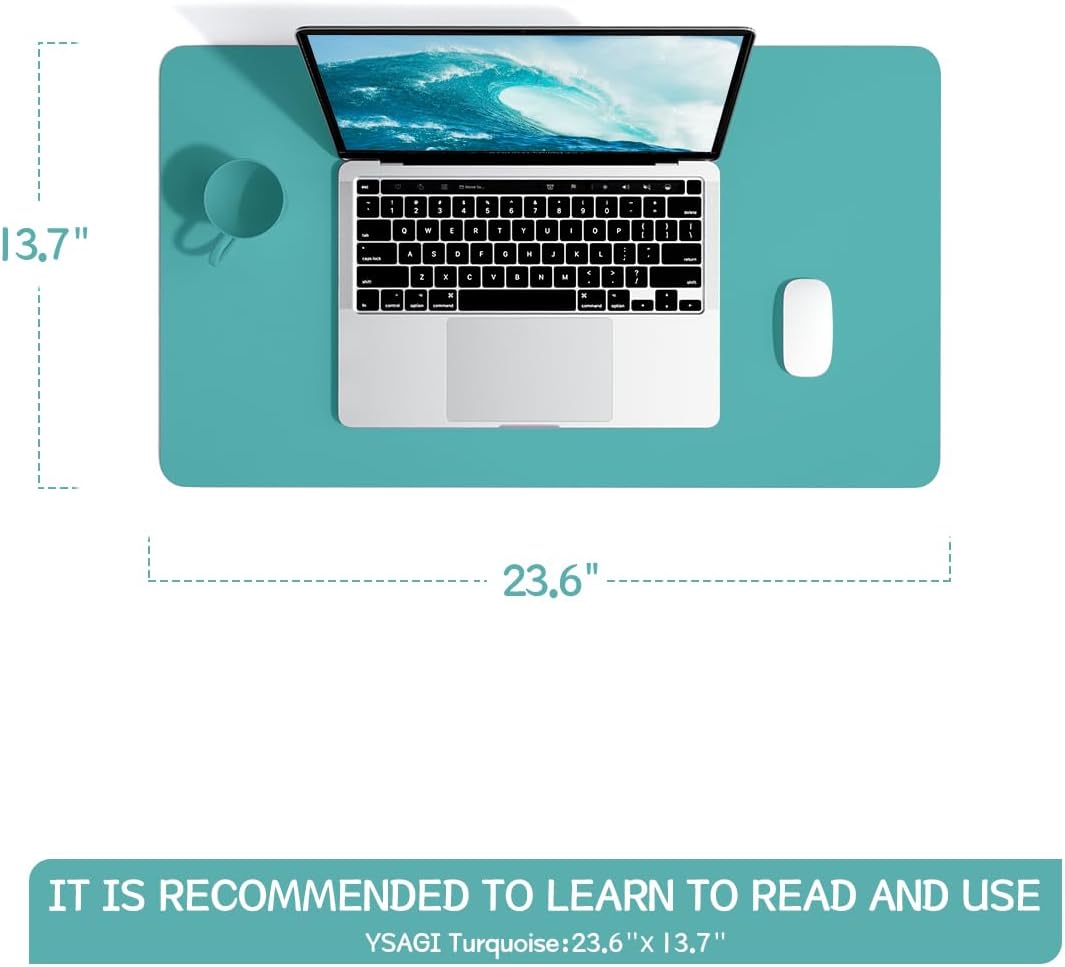 YSAGi Non-Slip Leather Desk Pad, Waterproof Laptop Computer Desk Keyboard Mat, Table Protector Blotter Mat, Large Mouse Pad for Office/Work/Home/Decor(Green Blue, 23.6" x 13.7")