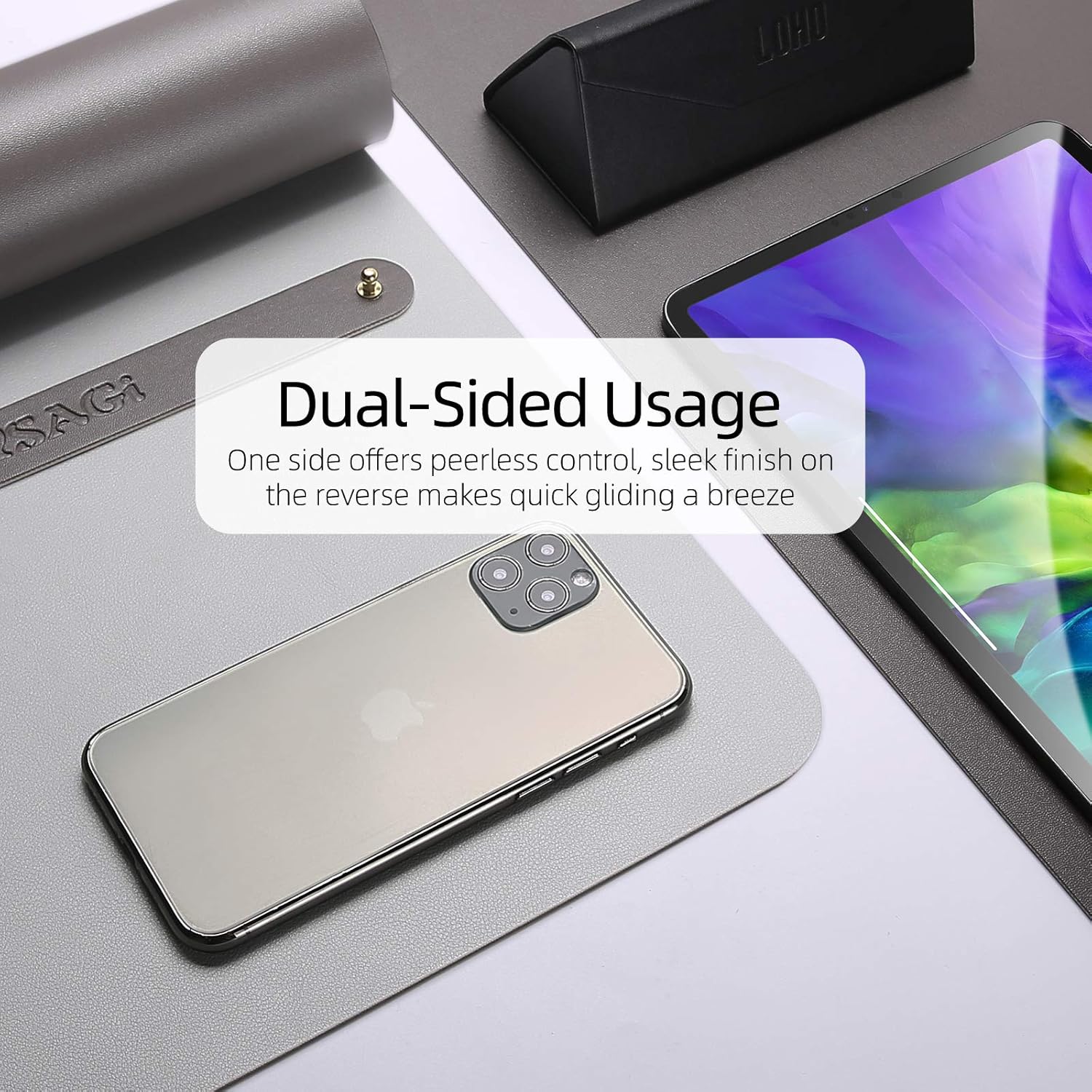 YSAGi Desk Mat, Mouse Pad,Waterproof Desk Pad,Large Mouse pad for Desk, Leather Desk Pad Large for Keyboard and Mouse,Dual-Sided Mouse Mat for Office and Home (Dark Grey, 35.4" x 17")