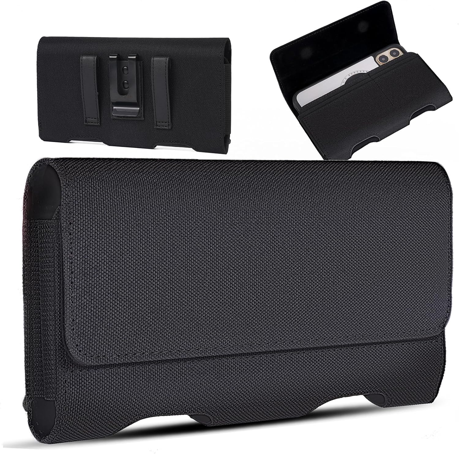 BECPLT for iPhone 17 Pro 17/16/15/14/13/12/11 Pro Cell Phone Pouch Nylon Holster Case with Belt Clip Cover for iPhone Xs X Galaxy S25 S24 S23 S22 S21 S20 (Black)
