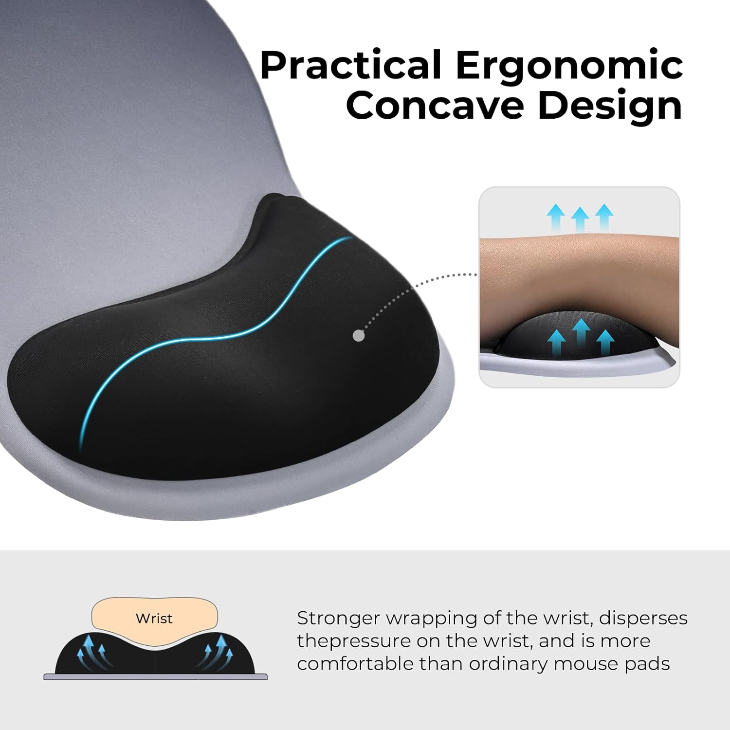 EooCoo Ergonomic Mouse Pad with Gel Wrist Rest Support Middle Concave Design, Relieve Wrist Pain Mousepad, Non-Slip Base for Laptop, Computer, Office Desk Accessories, Carpal Tunnel Syndrome