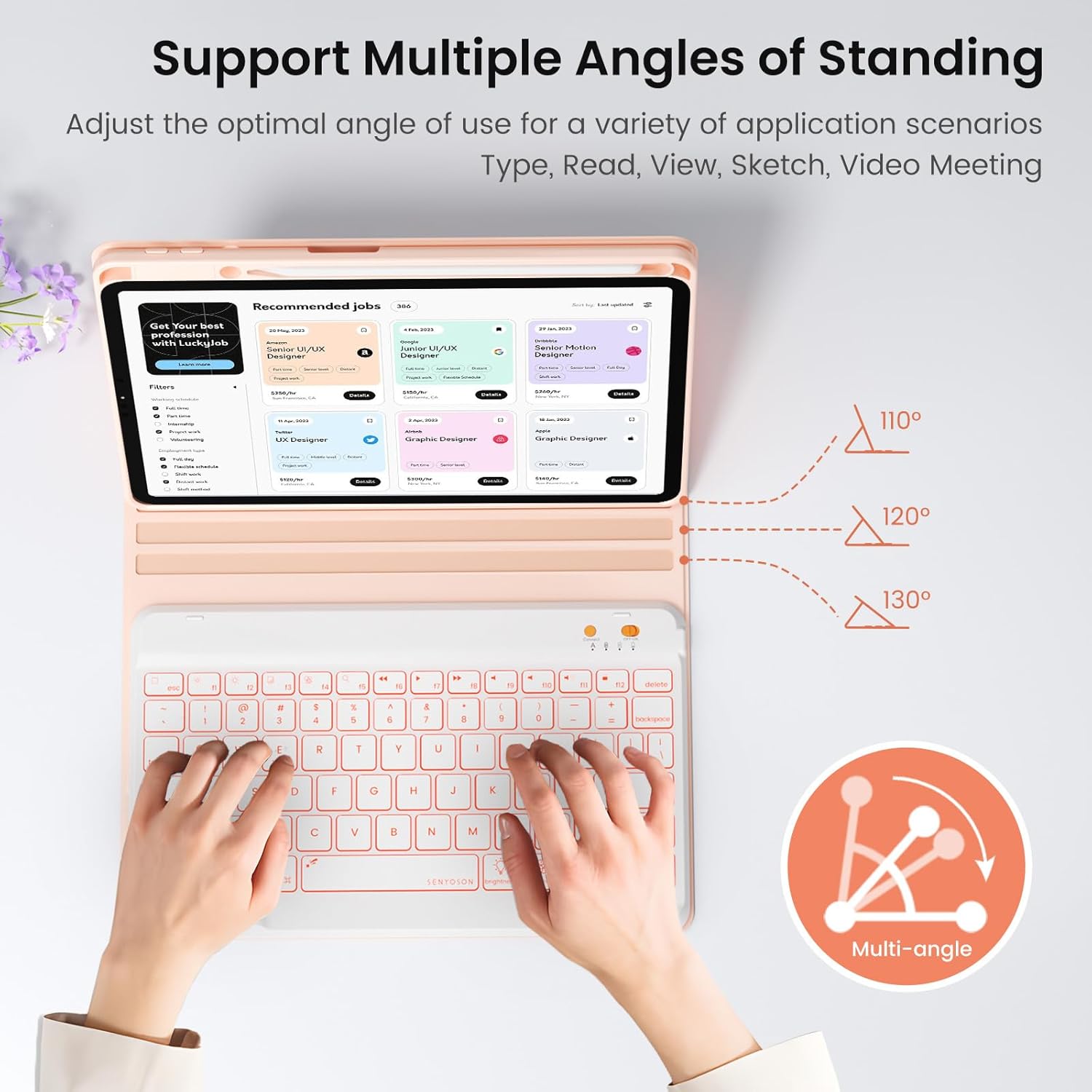 - â ăColorful Backlit Keyboard & Hybrid Shockproof Protective CoverăOptional backlight mode and 7 vibrant colors make typing fun and easy in the dark. Scissors mechanical keyboard feels quiet and smooth. The protective case inner layer is of honeycomb grid pattern cushion that releases more 80% hotness than other iPad cases, prevent overheating to extend your iPad life and maximizing screen protection.