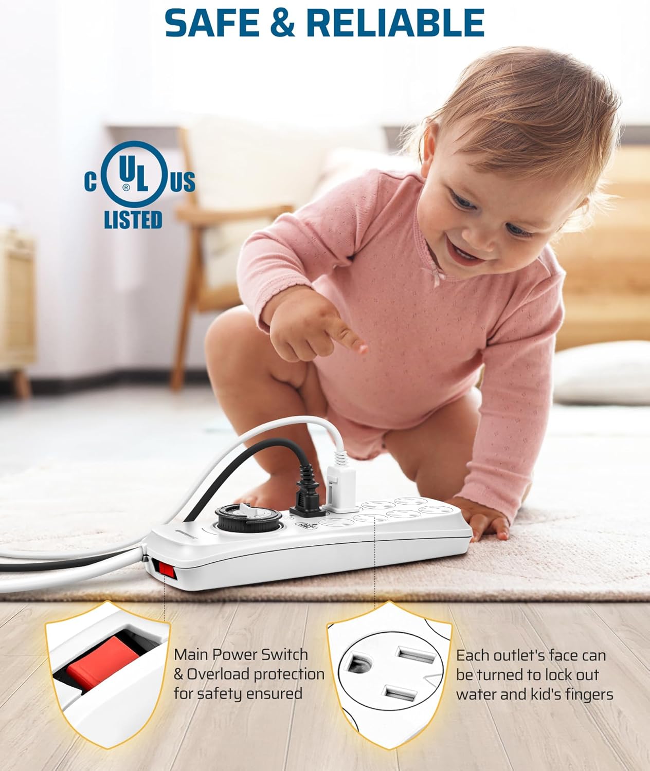 - SAFE & RELIABLE - UL approved, the power strip timer is equipped with overload protection, Rated 15A, 125V, 1875W, 60HZ, 14/3 AWG cord for indoor use