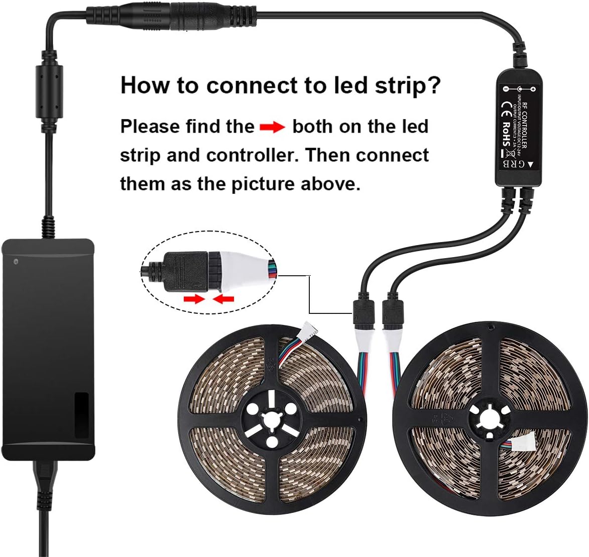 - 【2-Ports Connector】(Package comes with 1pcs x 2-Ports remote controller) You can connect 1 or 2 rolls of led strips as you like. One remote can control 2 rolls of strips at the same time.