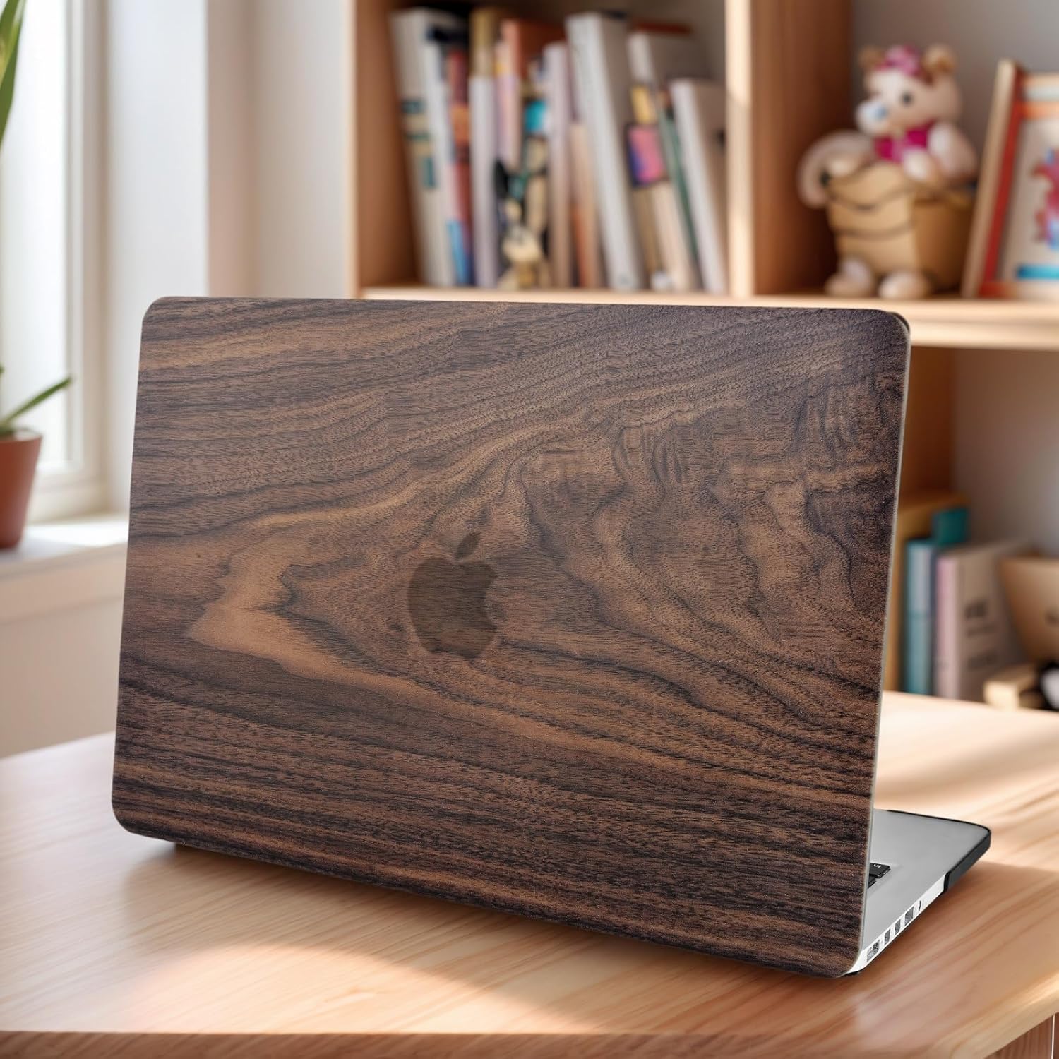 KECC Compatible with MacBook Air 13 inch Case 2022 2021 2020 2019 2018 Release M1 A2337 A2179 A1932 Plastic Hard Shell for MacBook Air 13.3 inch + Keyboard Cover + Sleeve, Walnut Wood