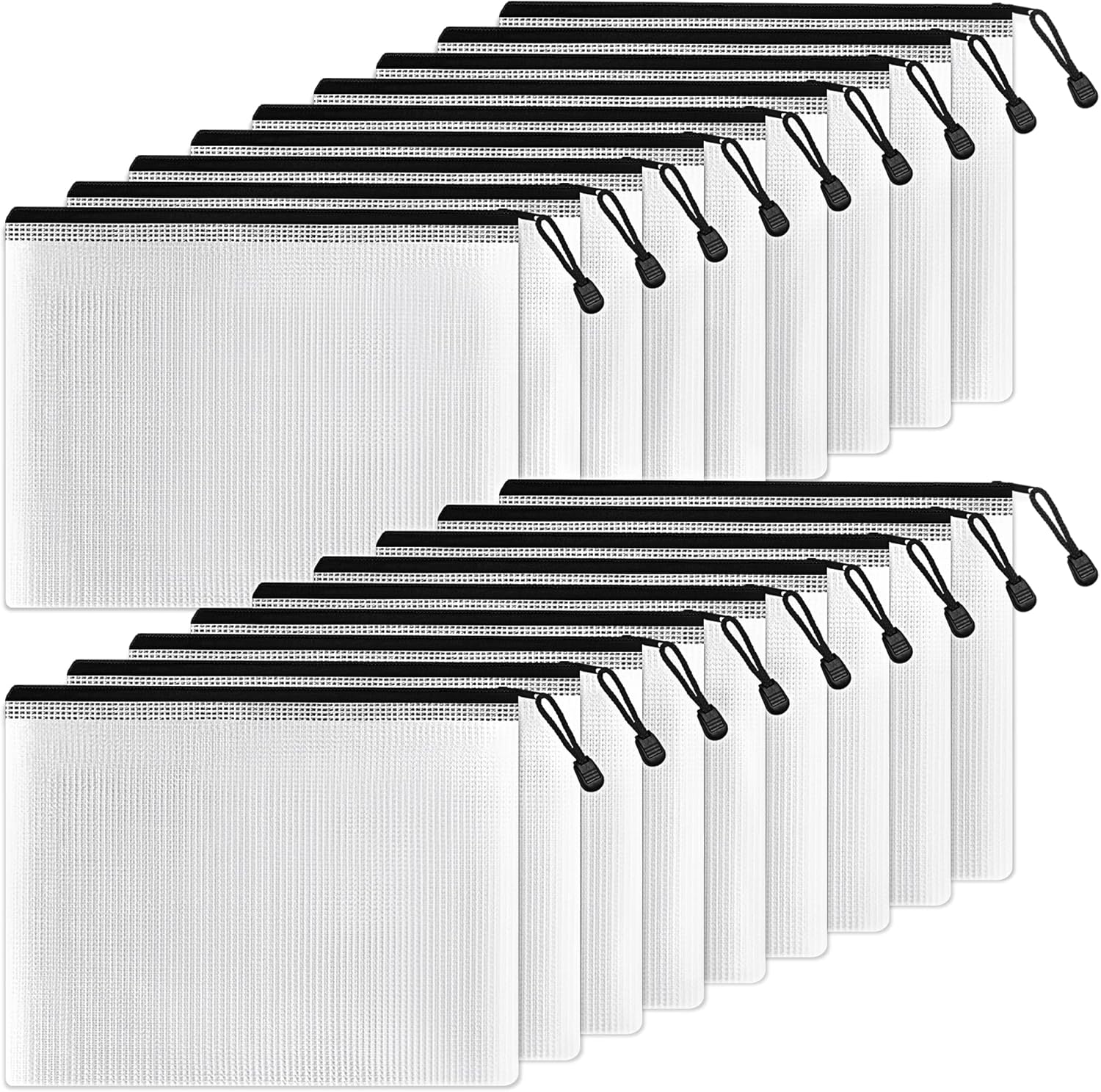 SUNEE Plastic Mesh Zipper Pouch 6x9 in (Black, 18 Packs),Extra Large Water-Resistant Zip Bag for School Office Supplies, Puzzles & Games Organizing Storage