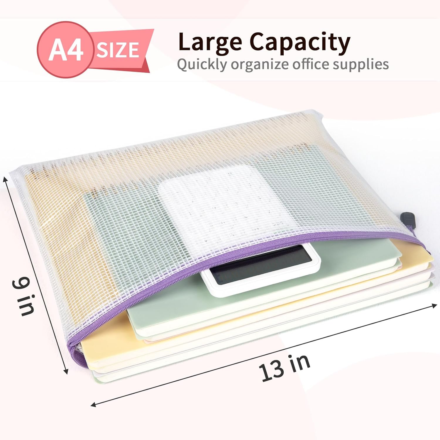 Umriox Mesh Zipper Pouch Puzzle Bags, 13.0x9.0 in (12 Colors, 12 Packs), Letter Size A4 Size Zipper Bags for Office Supplies Travel Accessories