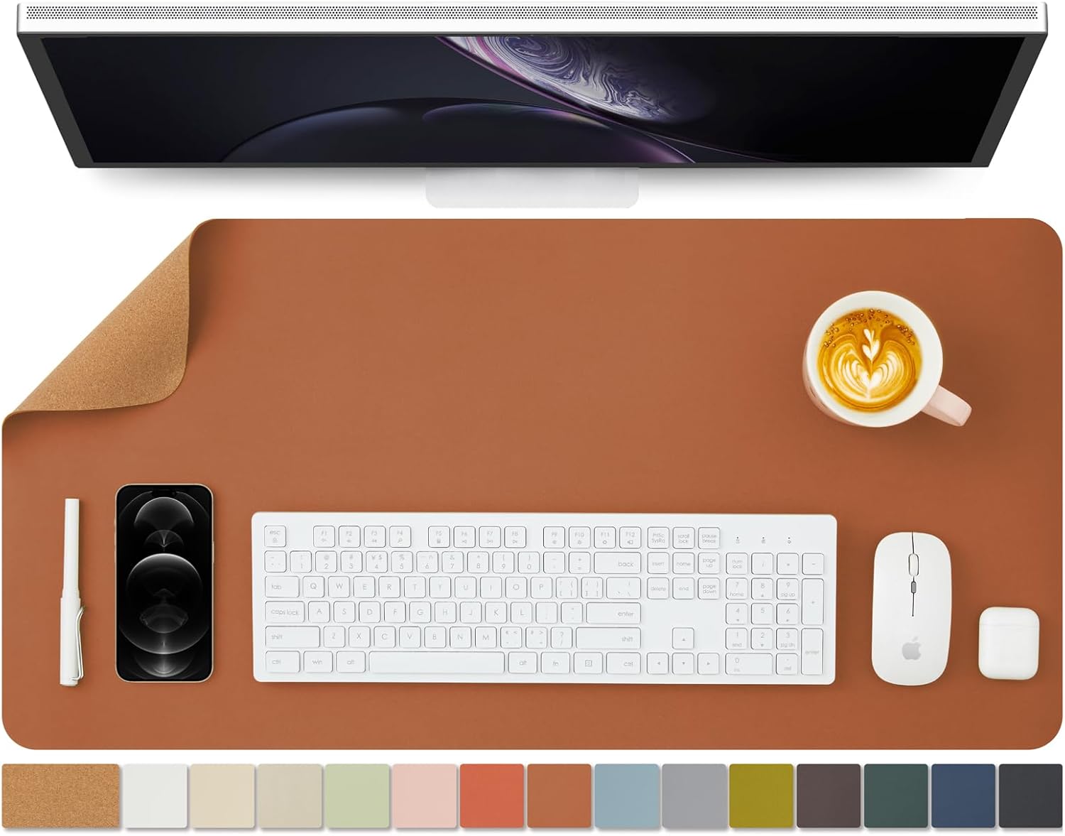Cork Desk Mat - Dual-Sided Desk Pad for Office and Home - Desk Organization and Accessories - Ideal for Large Mouse Pad and Desk Mats on Top of Desks(Brown,80cmx 40cm)