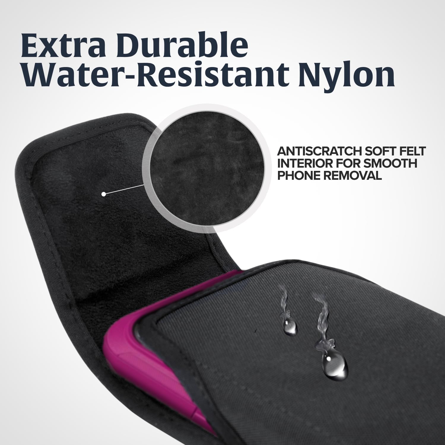 Turtleback Belt Clip for iPhone 16 Pro, 16e, 15 pro 14 Pro 13 Pro -Large- Fits w/Defender Bulky Style Cases - Premium Black Nylon, Vertical Belt Holder, Magnetic Closure HD Rotating Belt Clip