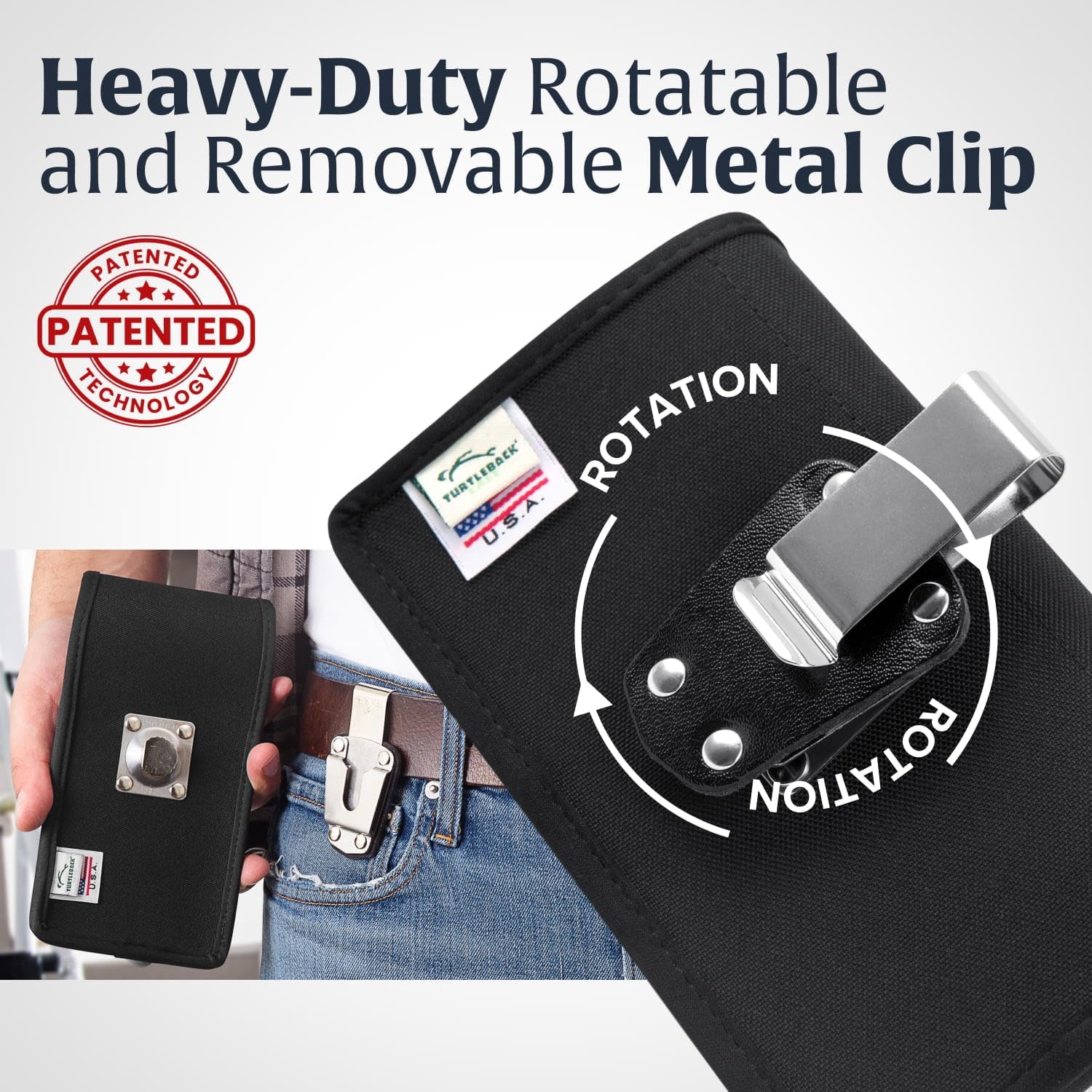Turtleback Belt Clip for iPhone 16 Pro, 16e, 15 pro 14 Pro 13 Pro -Large- Fits w/Defender Bulky Style Cases, Premium Black Nylon, Horizontal Belt Holder, Magnetic Closure HD Rotating Belt Clip