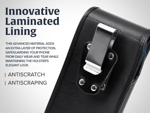 - SOFT FELT INTERIOR: This cell phone holster is lined with soft laminated material for smooth phone removal and scratch-free protection. Designed as a durable phone belt holder, it prevents scuffs and keeps your device in top condition. A reliable option in cell phone cases & covers, this stylish iPhone Pro leather case doubles as a secure phone holster for everyday use.