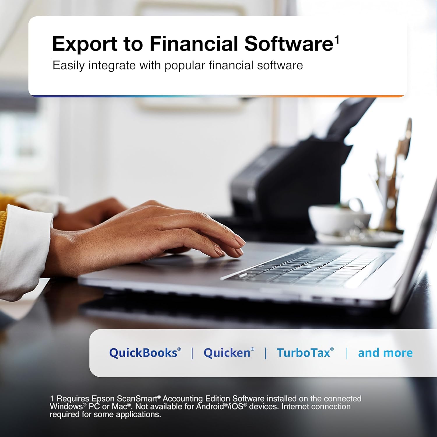 - Export to Financial Software² — Turn stacks of receipts and invoices into categorized digital data that easily integrates into financial applications, such as QuickBooks and TurboTax