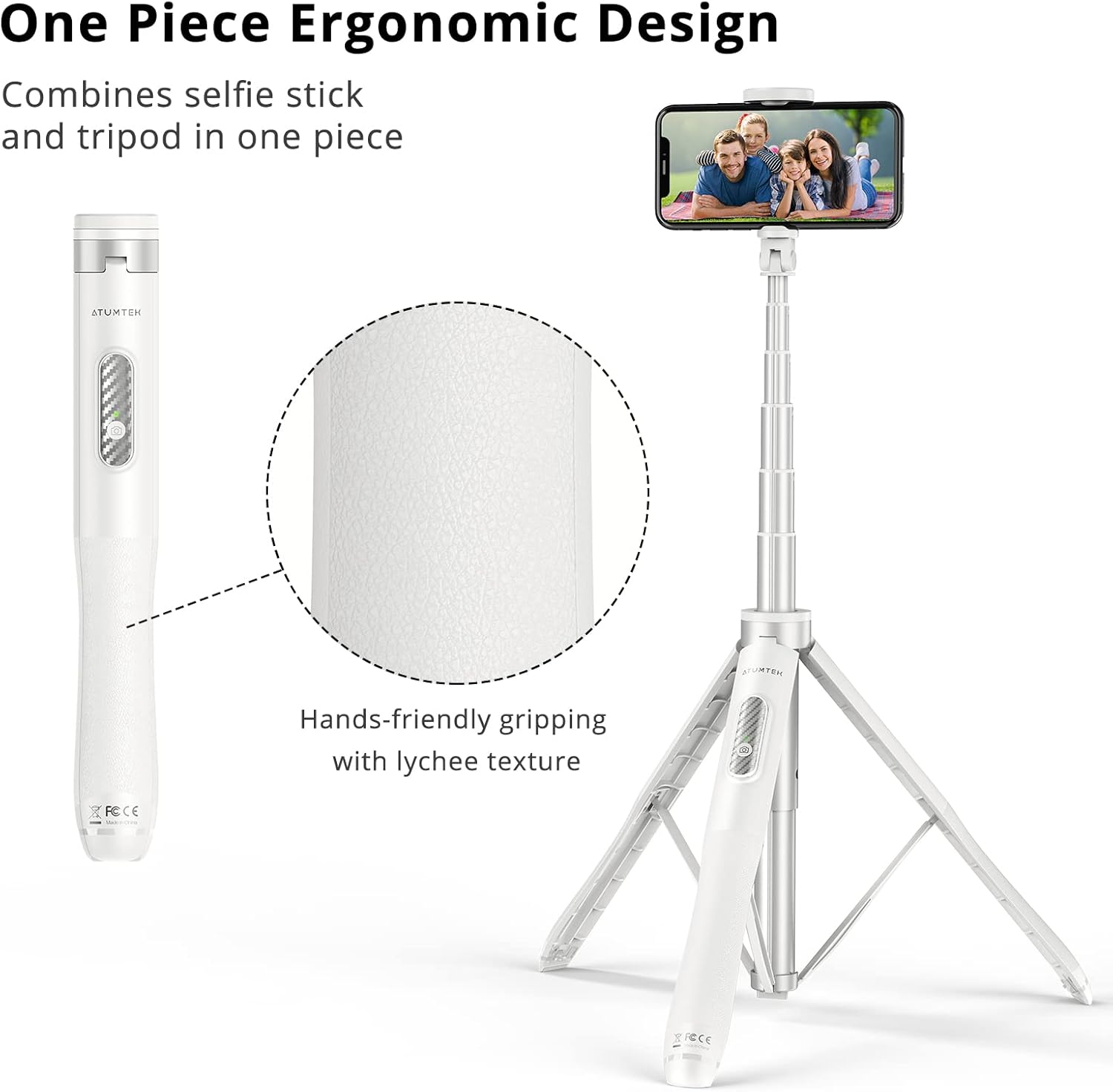 ATUMTEK 51" Selfie Stick Tripod, All in One Extendable Phone Tripod Stand with Bluetooth Remote 360° Rotation for iPhone and Android Phone Selfies, Video Recording, Vlogging, Live Streaming, White