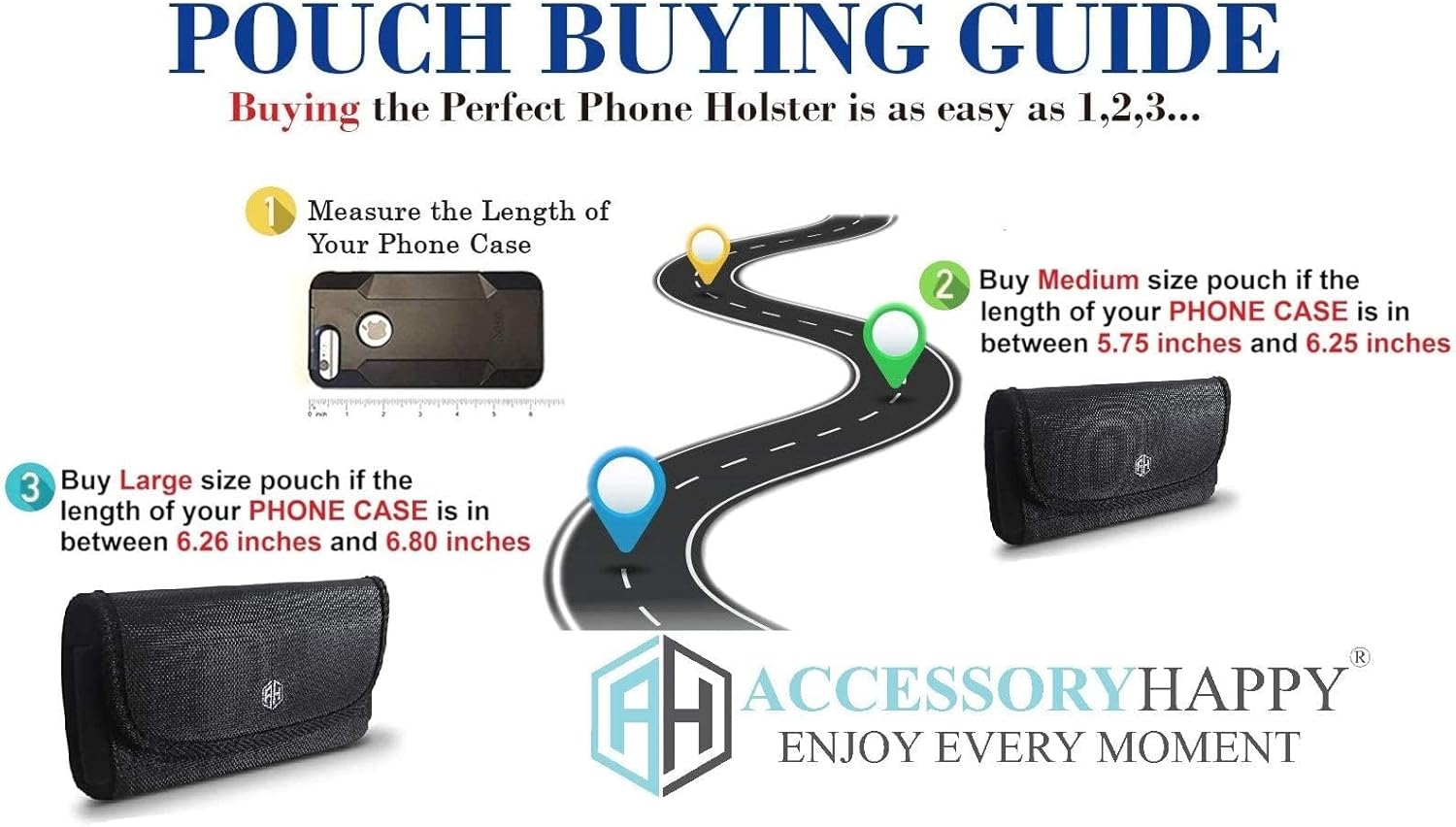 - AH phone pouch Fits with OtterBox or Other Thick Case on - Inside Dimensions: [7.0" X3.86" X 0.71"] This is a universal phone case holder, the fit may vary. Please be sure to measure your Phone before you order, to ensure your phone will fit in the case.