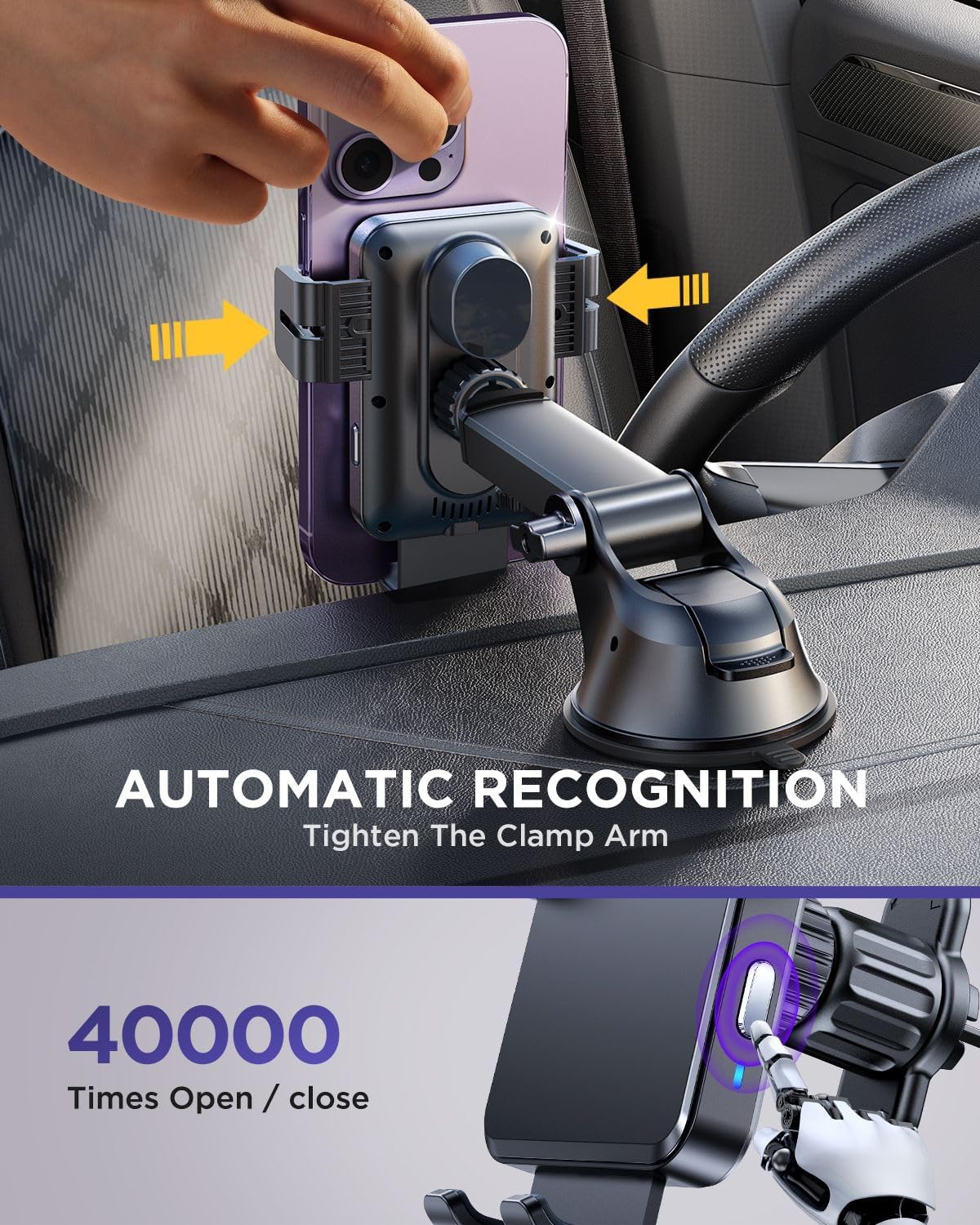 JOYROOM Wireless Car Charger,15W Qi Fast Charging Car Charger Phone Holder Mount, Auto-Clamping Alignment Windshield Dashboard Air Vent Cell Phone Holder for iPhone 16 Pro Max/15 Pro,Samsung S24/S23
