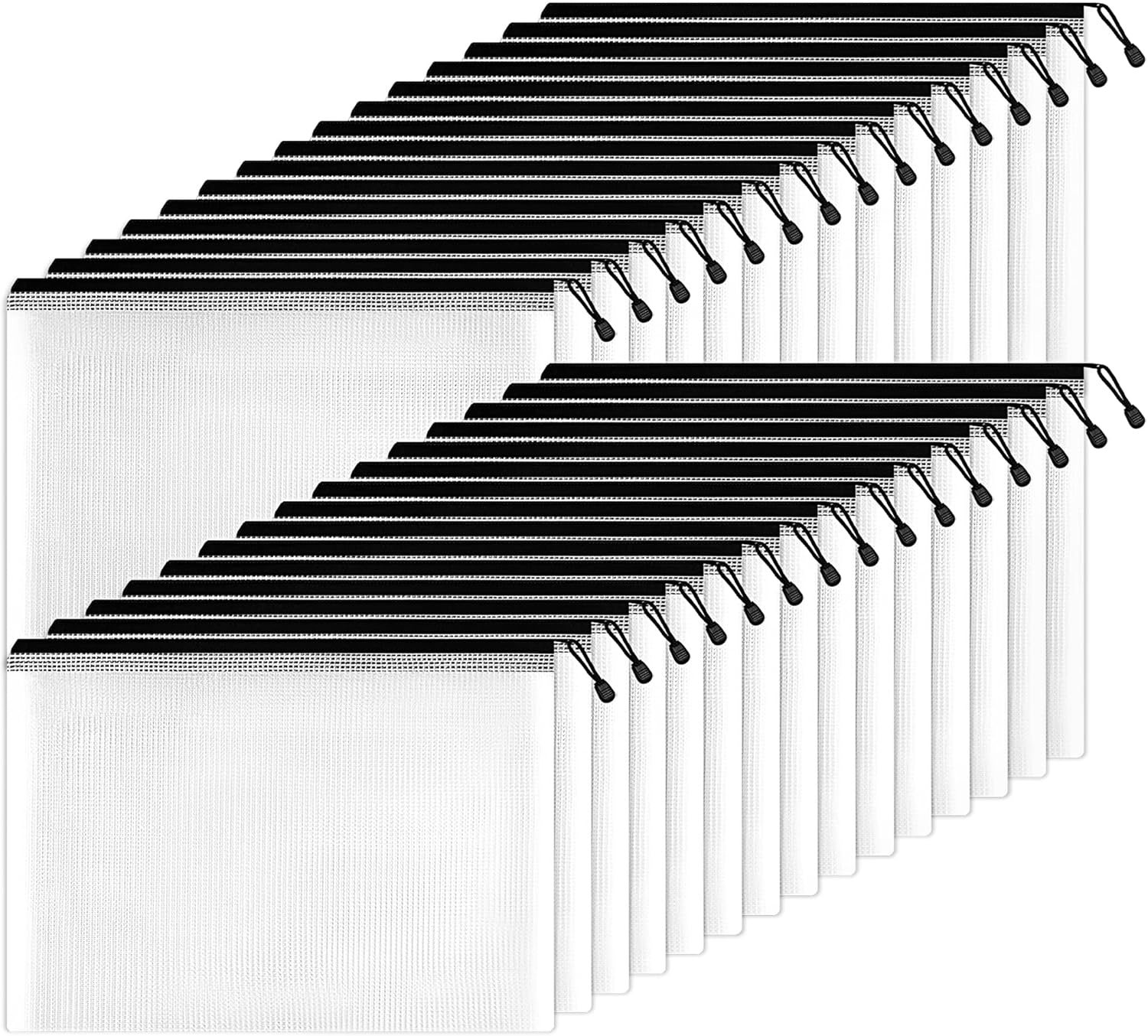 SUNEE Mesh Zipper Pouch 11x16 in (Black, 30 Packs), Large Mesh Zipper Pouch Bags for School Office Supplies, Puzzles & Games, Travel Accessories, Waterproof Zipper Pouches for Organizing