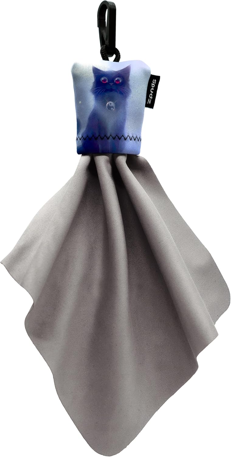 SPUDZ Classic Microfiber Lens Cleaner – Clip-On Pouch, Washable – for Binoculars, Scopes, Glasses, Screens | Cat, 6 x 6 Inch
