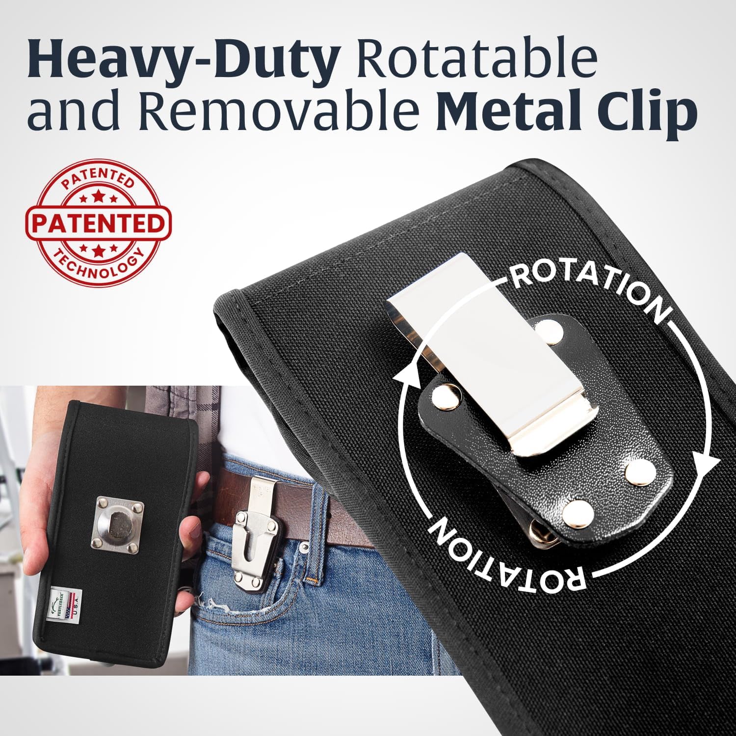 Turtleback Belt Clip for iPhone 16 Pro, 16e, 15 pro 14 Pro 13 Pro -Medium- Fits w/Shockproof Commuter Style Cases - Premium Black Nylon, Vertical Belt Holder, Magnetic Closure, HD Rotating Clip