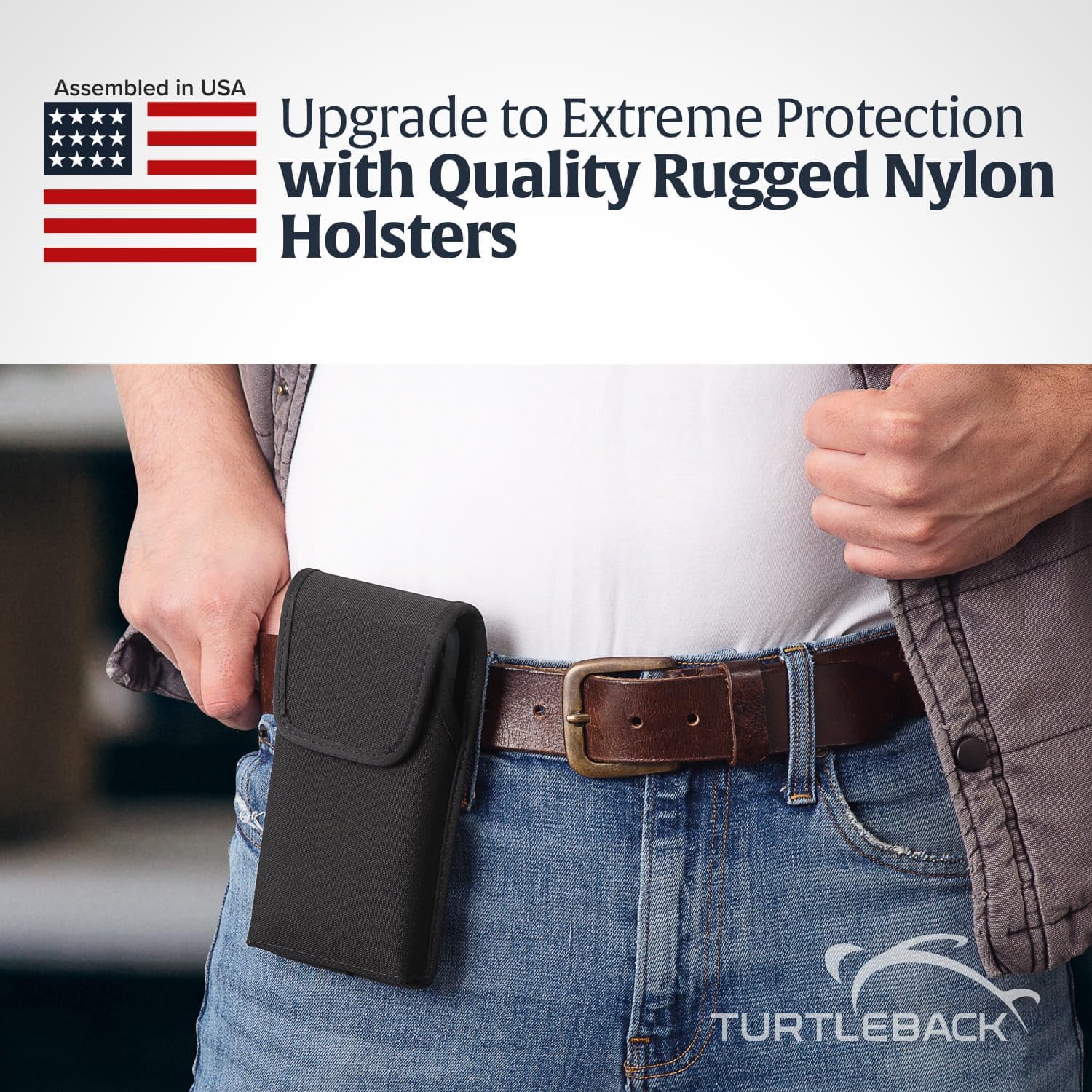 - ππππππππ πππ πππππ ππ πππ πππ: The Turtleback nylon phone case is crafted from premium imported nylon, offering a sleek look and durable feel that complements any style. This phone holster fits vertical on your belt and features a secure, nylon-wrapped metal clip for reliable everyday carry. Whether you need a rugged iPhone belt holder for men or a stylish holster for work, we have you covered. Turtleback has been proudly designing and building cases in the USA since 2001.