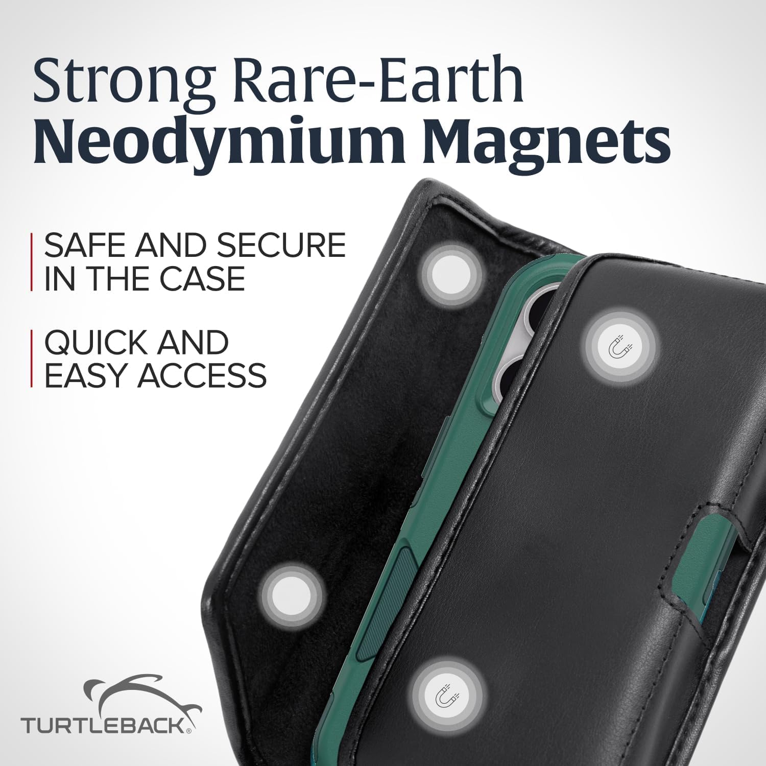 Turtleback Belt Holder for iPhone 16 Pro Max, 15 Pro Max, 14 Pro Max -Medium- Fits w/Shockproof Commuter Style Cases, Premium Black Leather Horizontal Case Magnetic Closure Leather Wrapped Clip