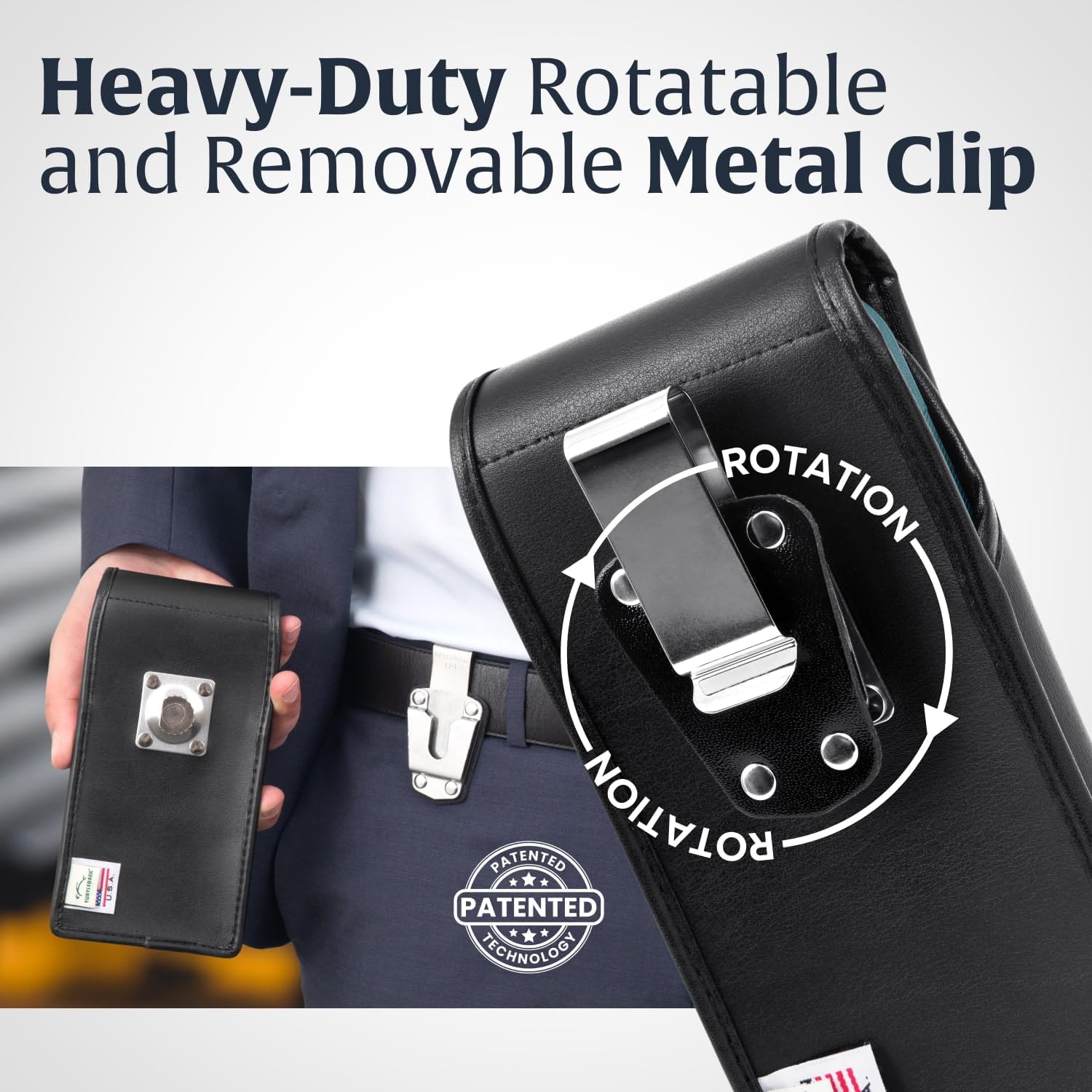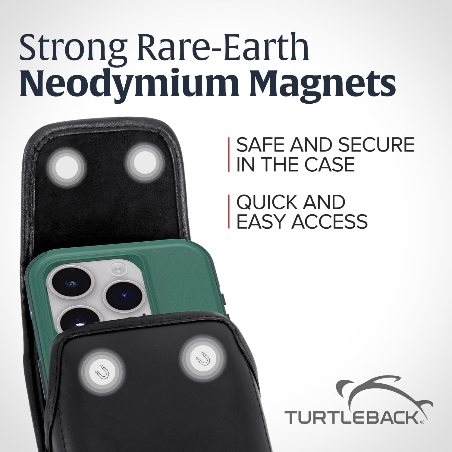 Turtleback Belt Clip for iPhone 16 Pro Max, 15 Pro Max, 14 Pro Max -Medium- Fits w/Shockproof Commuter Style Cases, Premium Black Leather Vertical Belt Holder, Magnetic Closure HD Rotating Clip