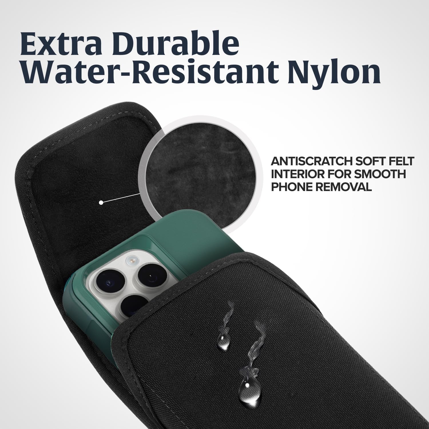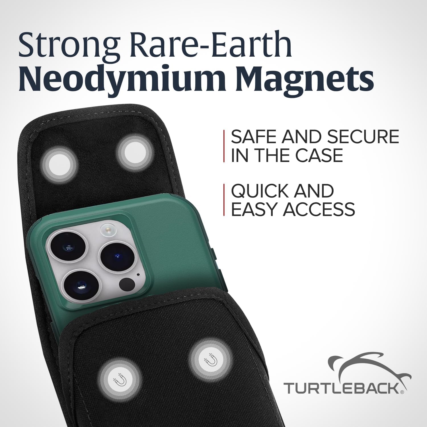 Turtleback Belt Clip for iPhone 16 Pro Max, 15 Pro Max, 14 Pro Max -Medium- Fits w/Shockproof Commuter Style Cases - Premium Black Nylon, Vertical Belt Holder Magnetic Closure, HD Rotating Clip