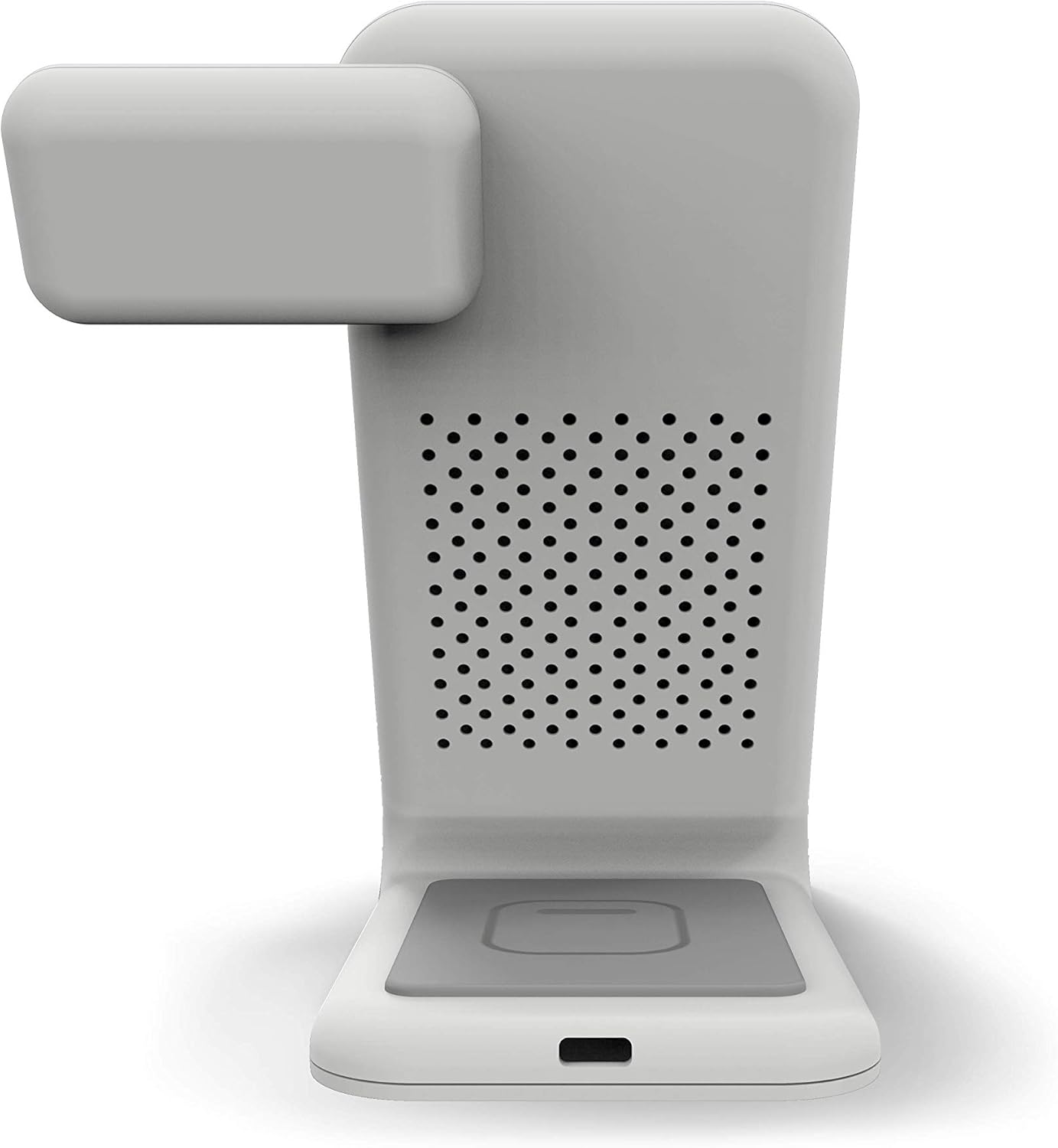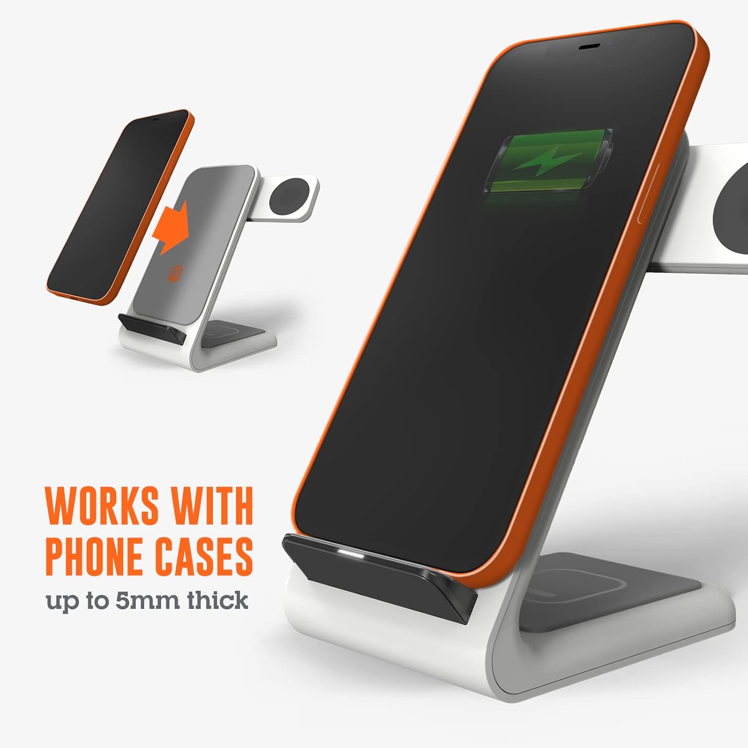 STM ChargeTree Swing 3-in-1 Wireless Charging Station for iPhone/Samsung/Android (15W/7.5W), AirPods (5W), Apple Watch (3W). Qi-Certified Stand, White