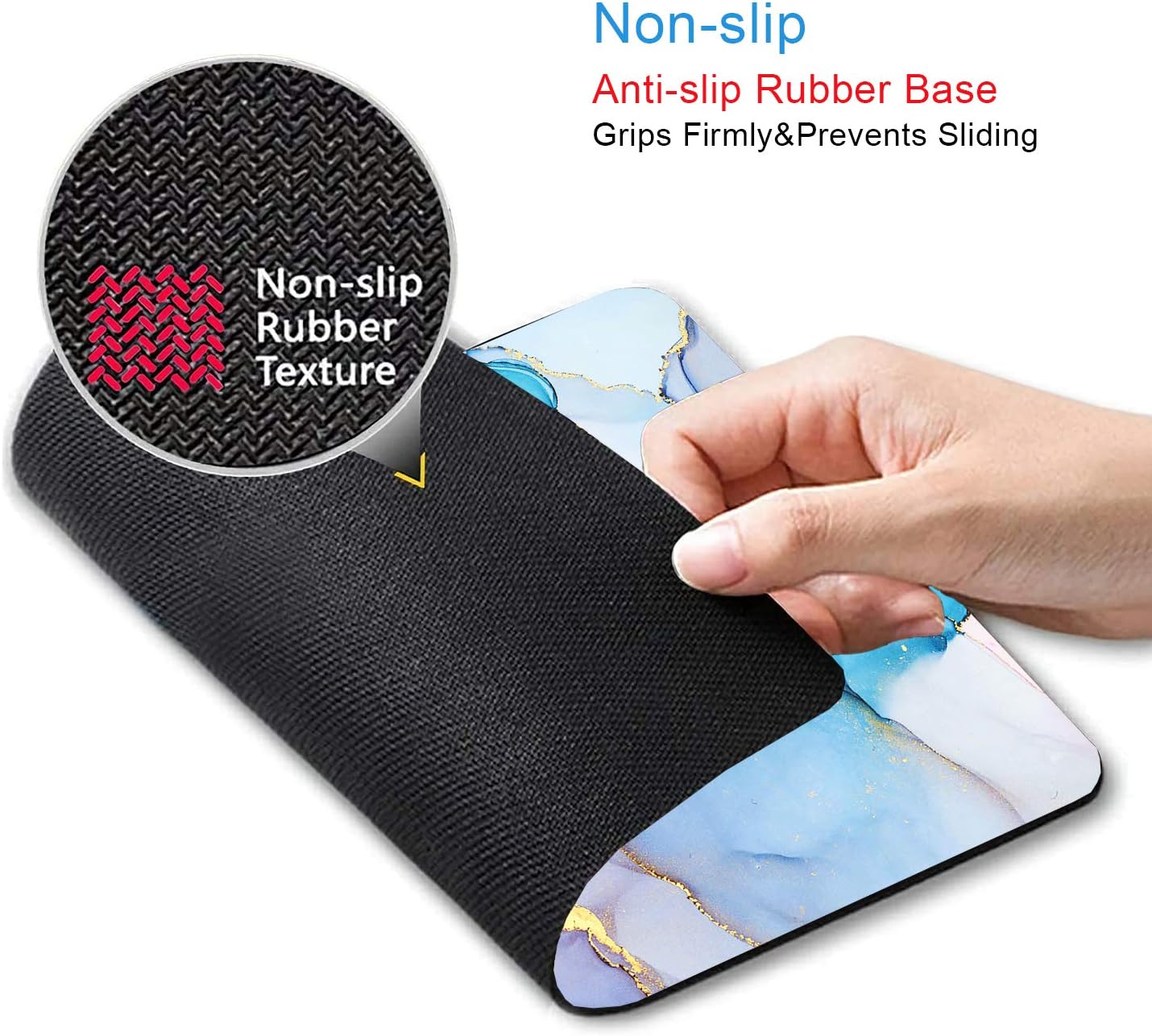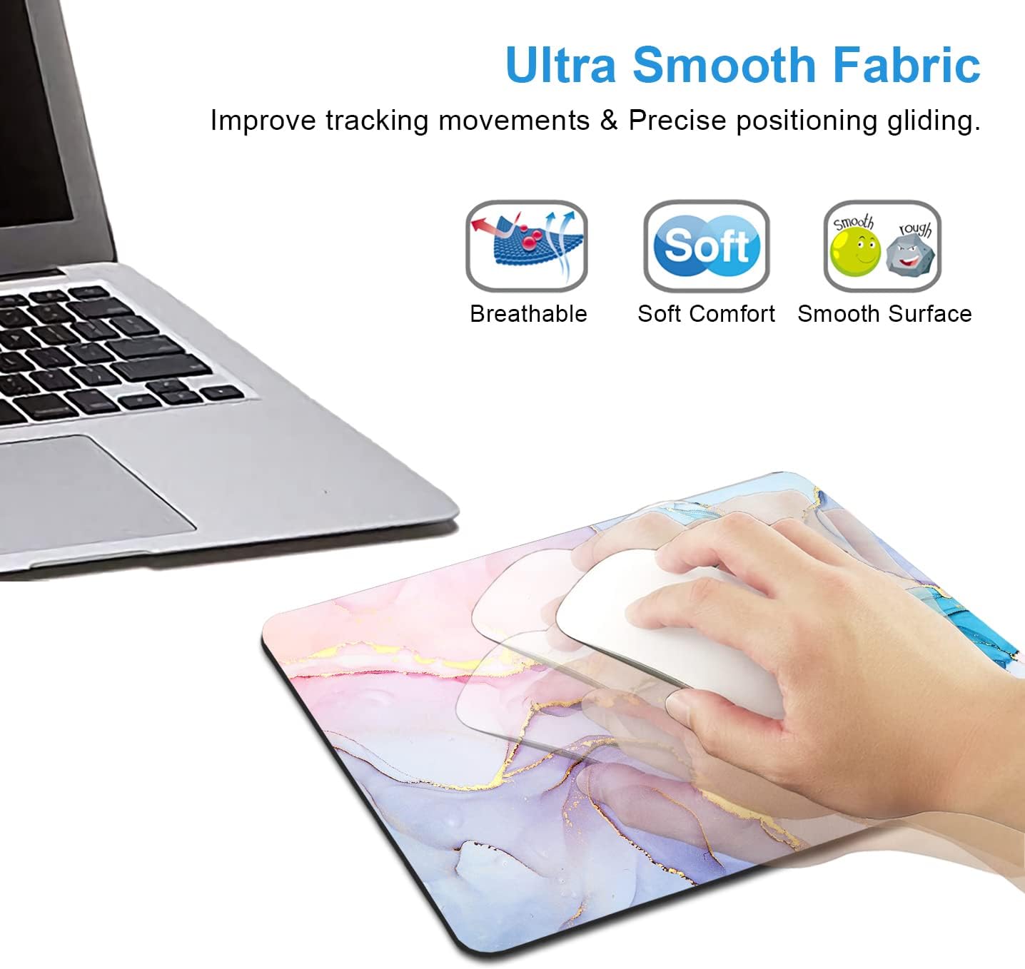 IMAYONDIA Blue Pink Ink Marble Mouse Mat, Custom Design Non-Slip Rubber Base Waterproof Office Mouse Pad, Golden Marbling for Women, 9.5 x 7.9 Inch