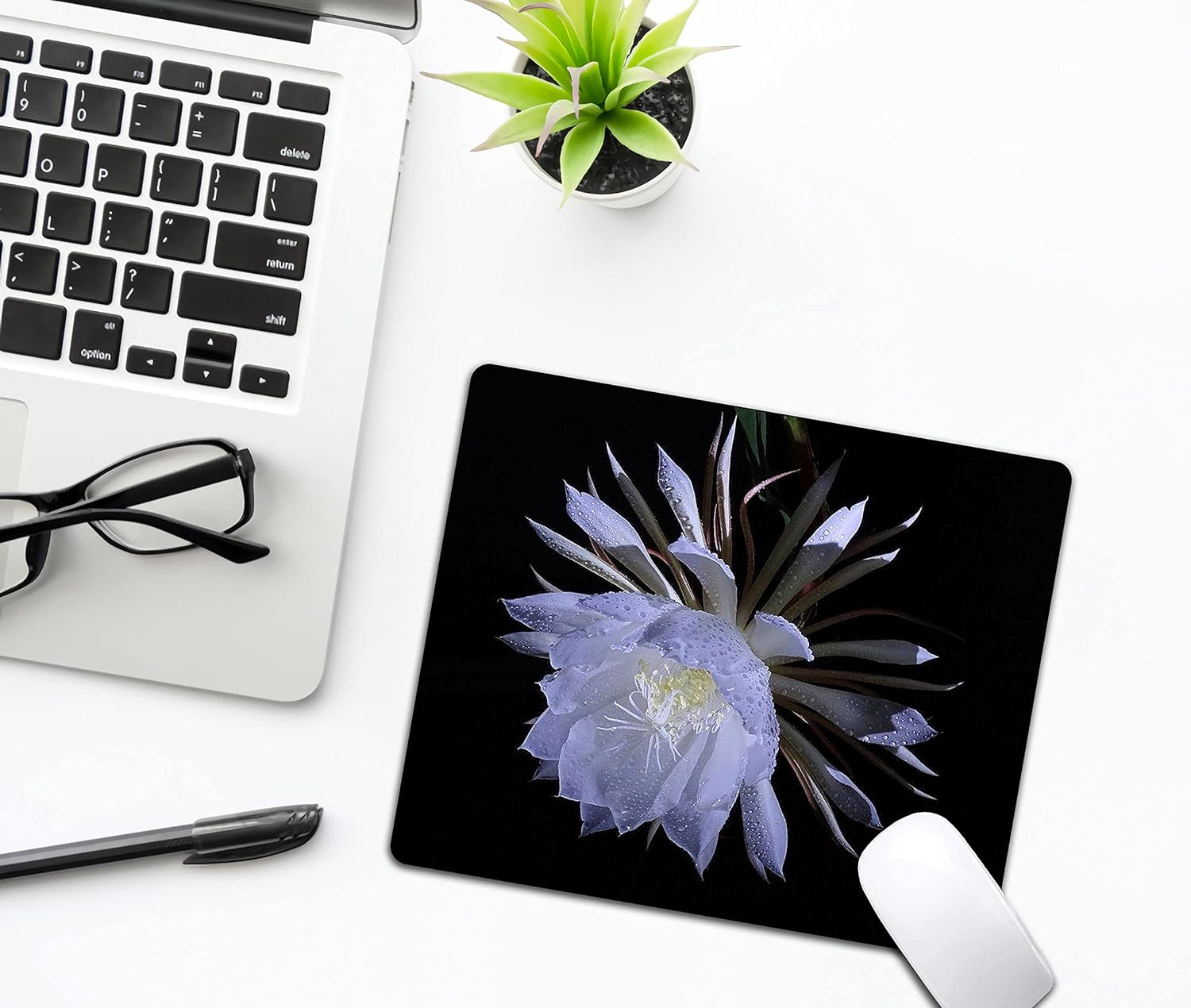 Night Blooming Flower Mouse Pad, Flawless White Flowers Mousepad for Design, Anti-Slip Rubber Base Wireless Mouse Pads for Laptop