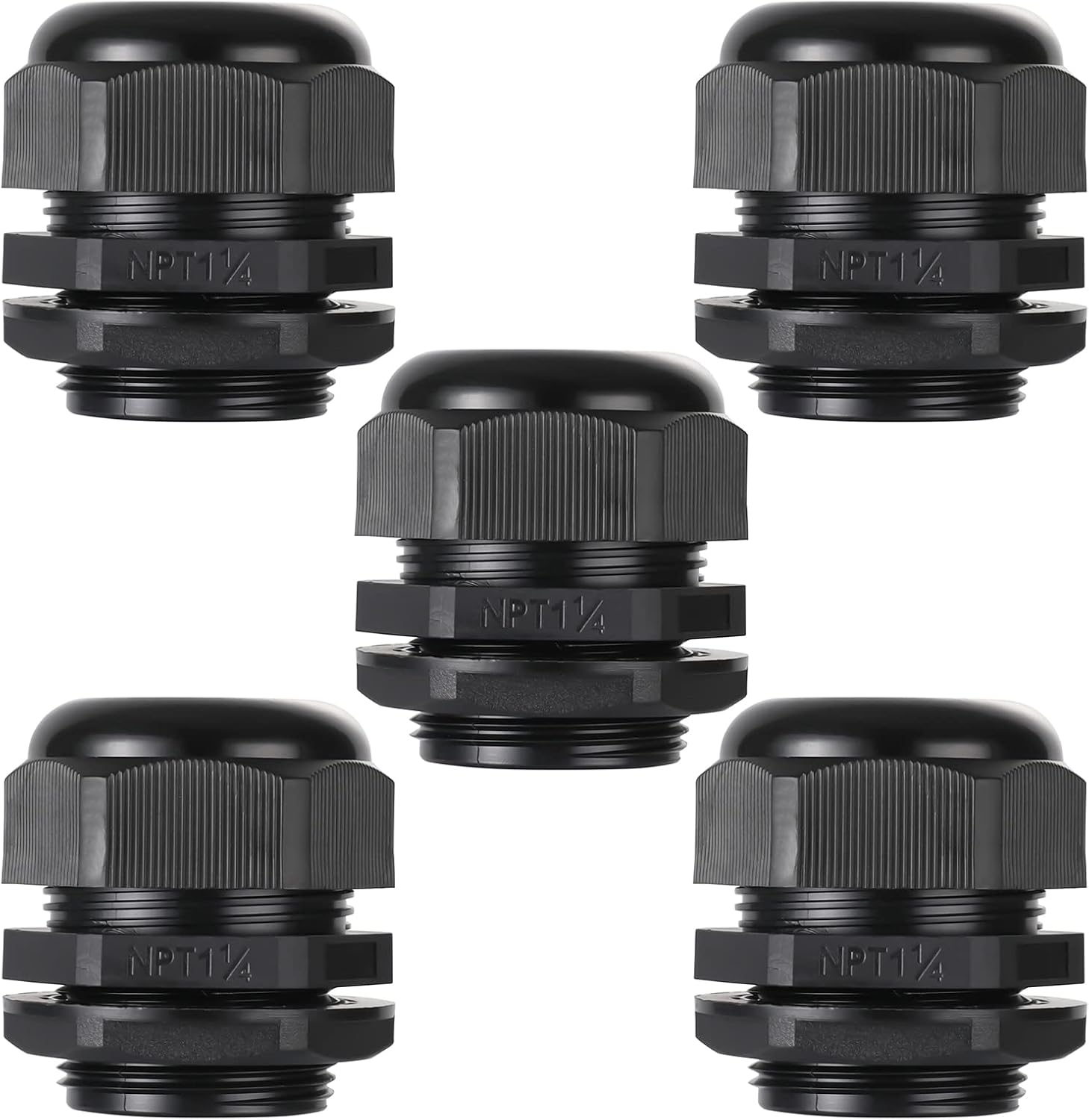 PENGLIN Cable Glands 1-1/4" NPT Nylon Cable Connector, Strain Relief Cord Connector, IP68 Waterproof Adjustable Locknut (1-1/4 Inch (5-Pack))
