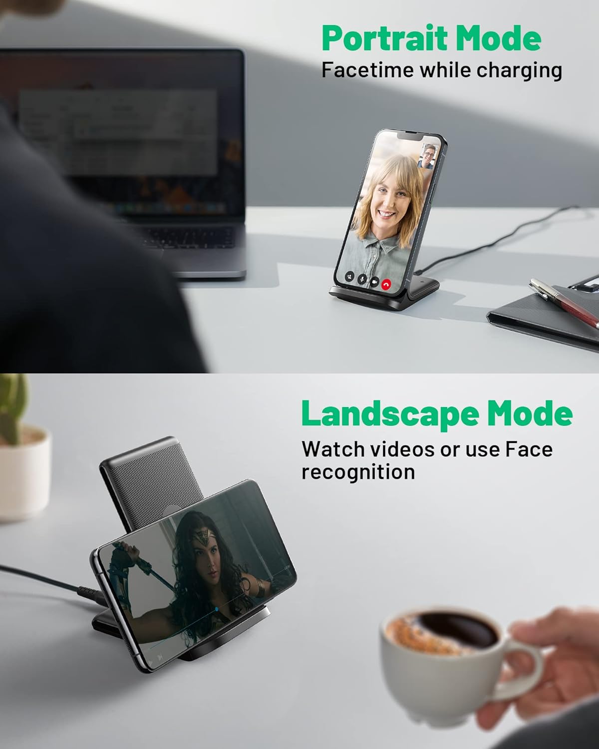 - â ăCertified Super-Conductor Dual Coils, Wider Charging Areaă The Dual Super Conductivity coils let you watch videos in landscape orientation, or stand in portrait mode for FaceTime call and facial recognitionâall without ever cutting power.