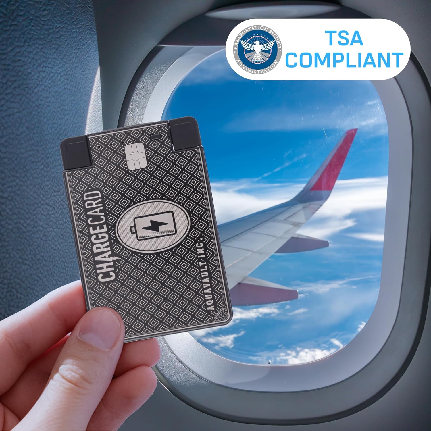 - AIR TRAVEL READY – KEEP IT WITH YOU: Easily slip it into your carry-on or pocket—ChargeCard meets airline safety guidelines and can be brought aboard flights with no restrictions. Ultra Thin and Lightweight at only 3.3" x 2.2" x 0.18" (2.1oz)