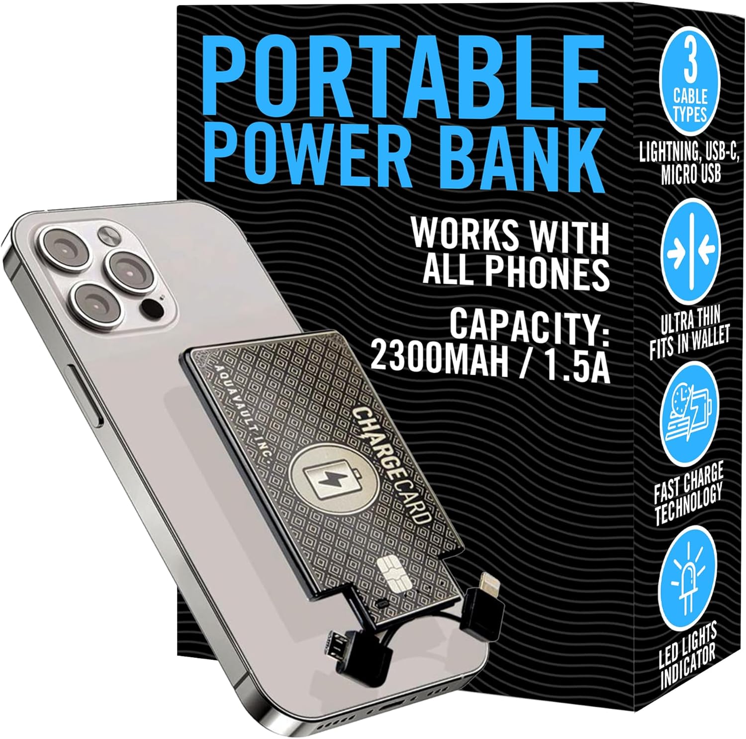 - EMERGENCY POWER, ALWAYS IN YOUR WALLET: No more dead phone anxiety. The ultra-slim ChargeCard fits in any wallet or cardholder, so you're never caught without a charger. Keep it on you 24/7—without even thinking about it