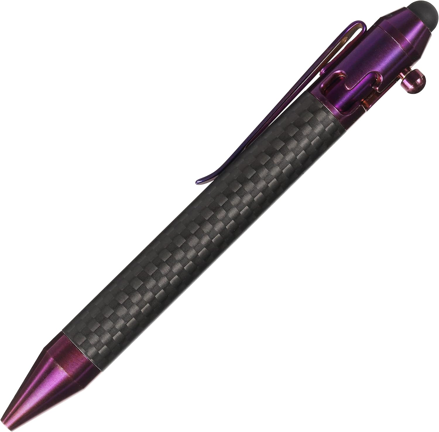 Cool Hand 4.9'' Carbon Fiber Bolt Action Pen with Retractable Stylus Tip for Any Touch Screen, Ballpoint Ink Refillable, Compact Size, Skelton Out Deep Pocket Clip (Carbon Fiber Purple)