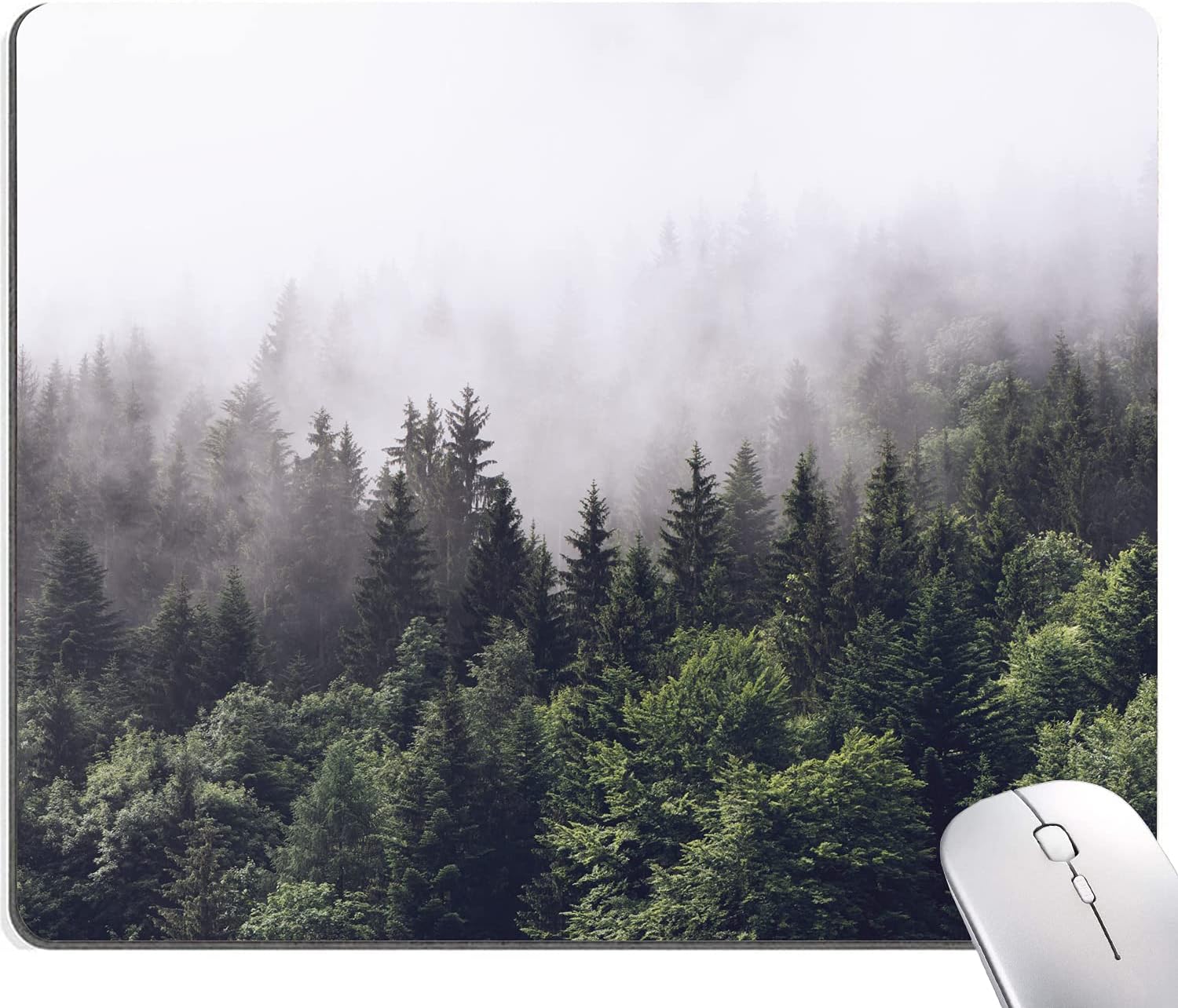 Misty Forest Mouse Pad, Natural Landscape Mouse Pad Custom Design, Square Waterproof Mouse Pad Non-Slip Rubber Base MousePads for Office Laptop, 9.5x7.9x0.12 in Inch