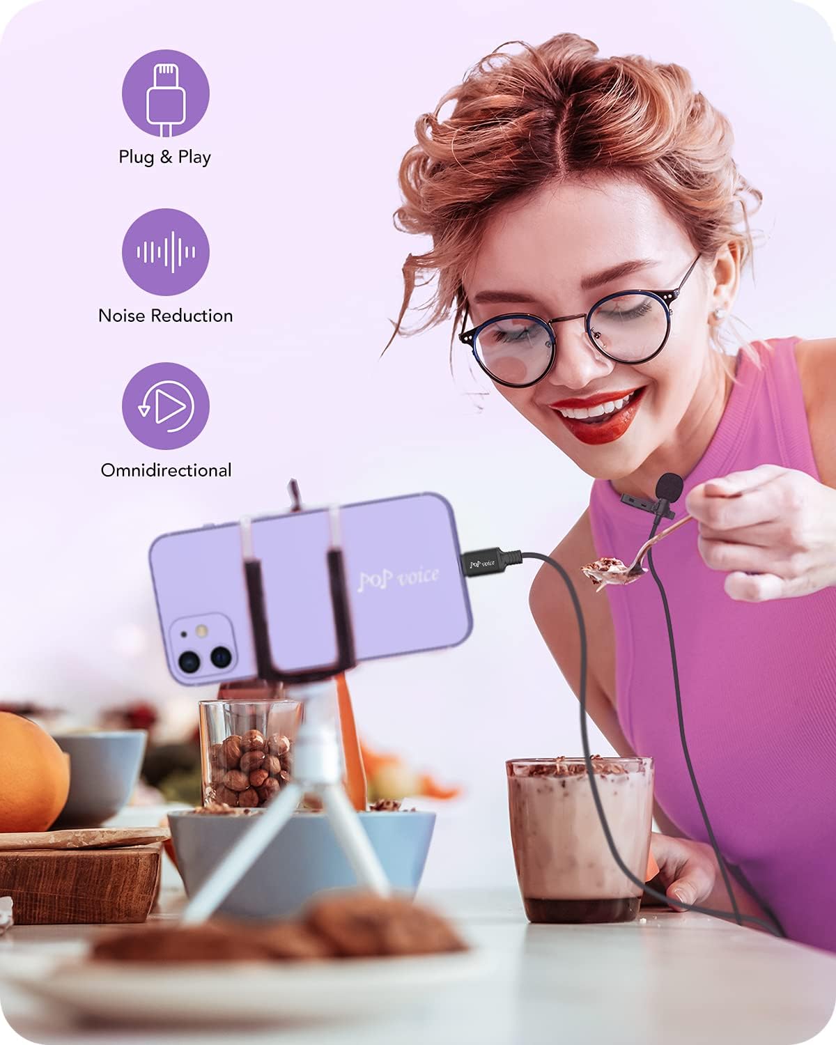 PoP voice Microphone Professional for iPhone Lavalier Lapel Omnidirectional Microphone for iPad, iPod, Condenser Mic for iPhone Audio & Video Recording, YouTube, Interview, Podcast, Vlogging(6.6 Feet)