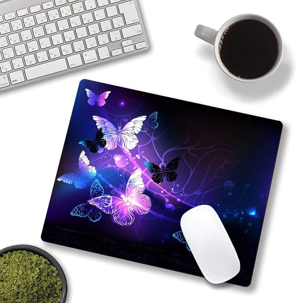 Mouse Pad, Gaming Mouse Pad, Non-Slip Rubber Base Mouse Mat with Designs for Laptop, Computer & Office, 9.5 x 7.9 x 0.12 inches (Purple Butterflies)