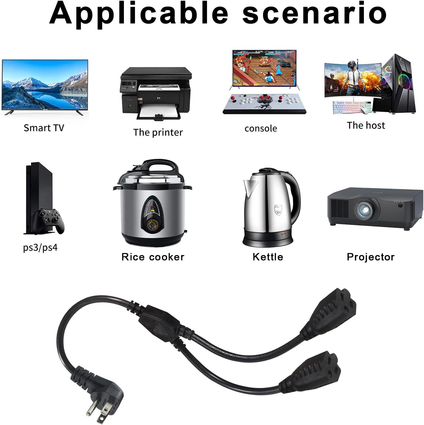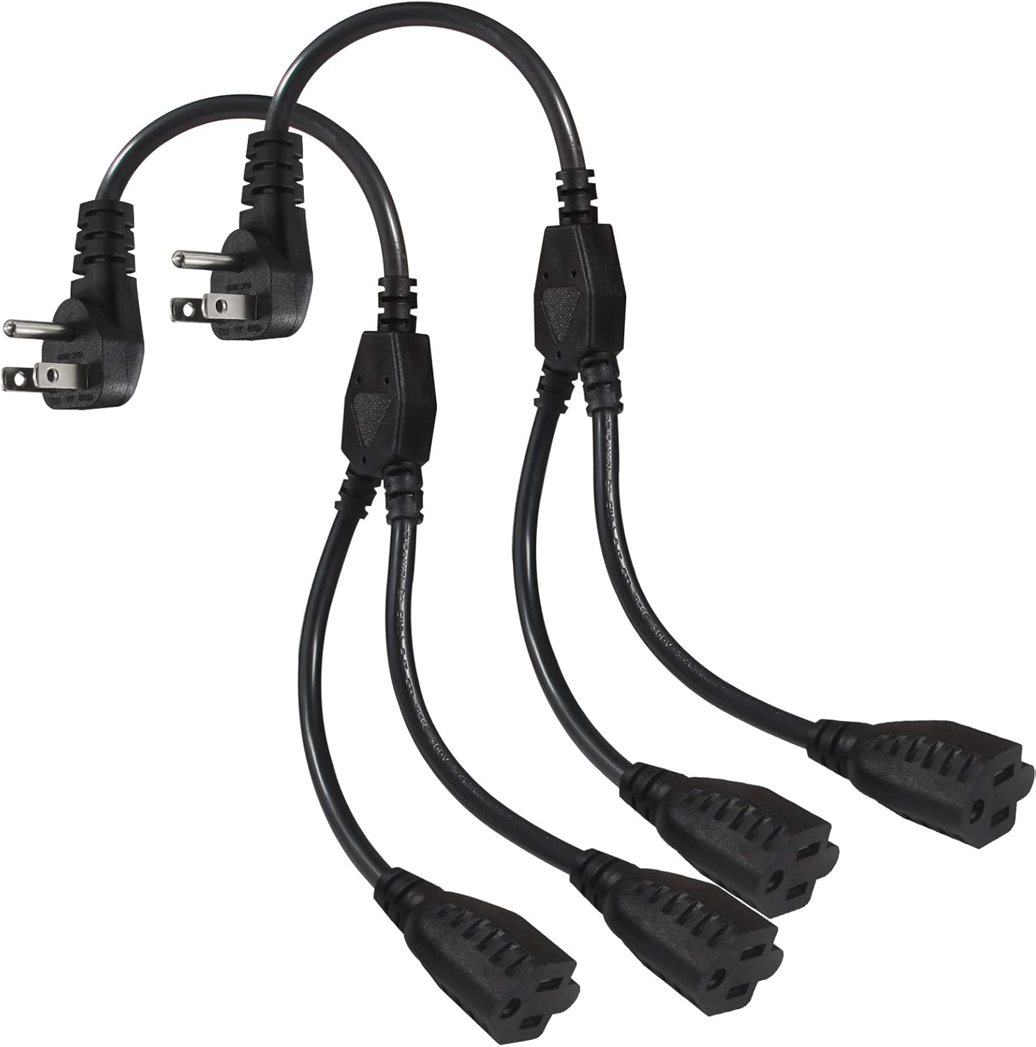- 【Flat Plug】This Y Splitter extends your power cord and angles the plug off to the side so that it can sit flat against the wall and free up other outlets. Position your furniture close to the wall, maximize space on your power strip, surge protector, or wall outlet.