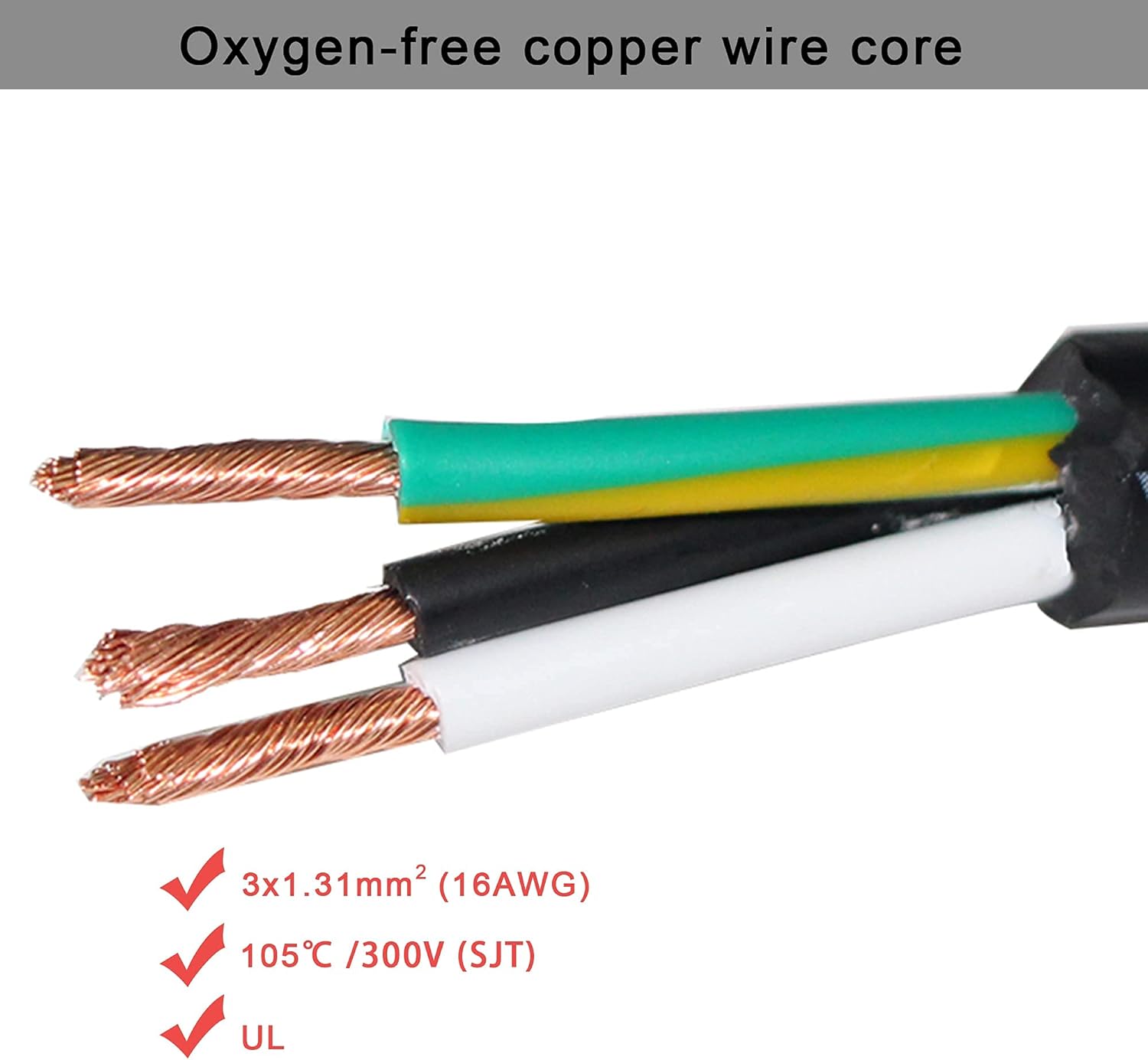 - 【Safe & Practical】 Designed to meet all US and international safety specifications, this SJT AC power cable is UL Listed and is 16 AWG - super thick and durable and built to last.