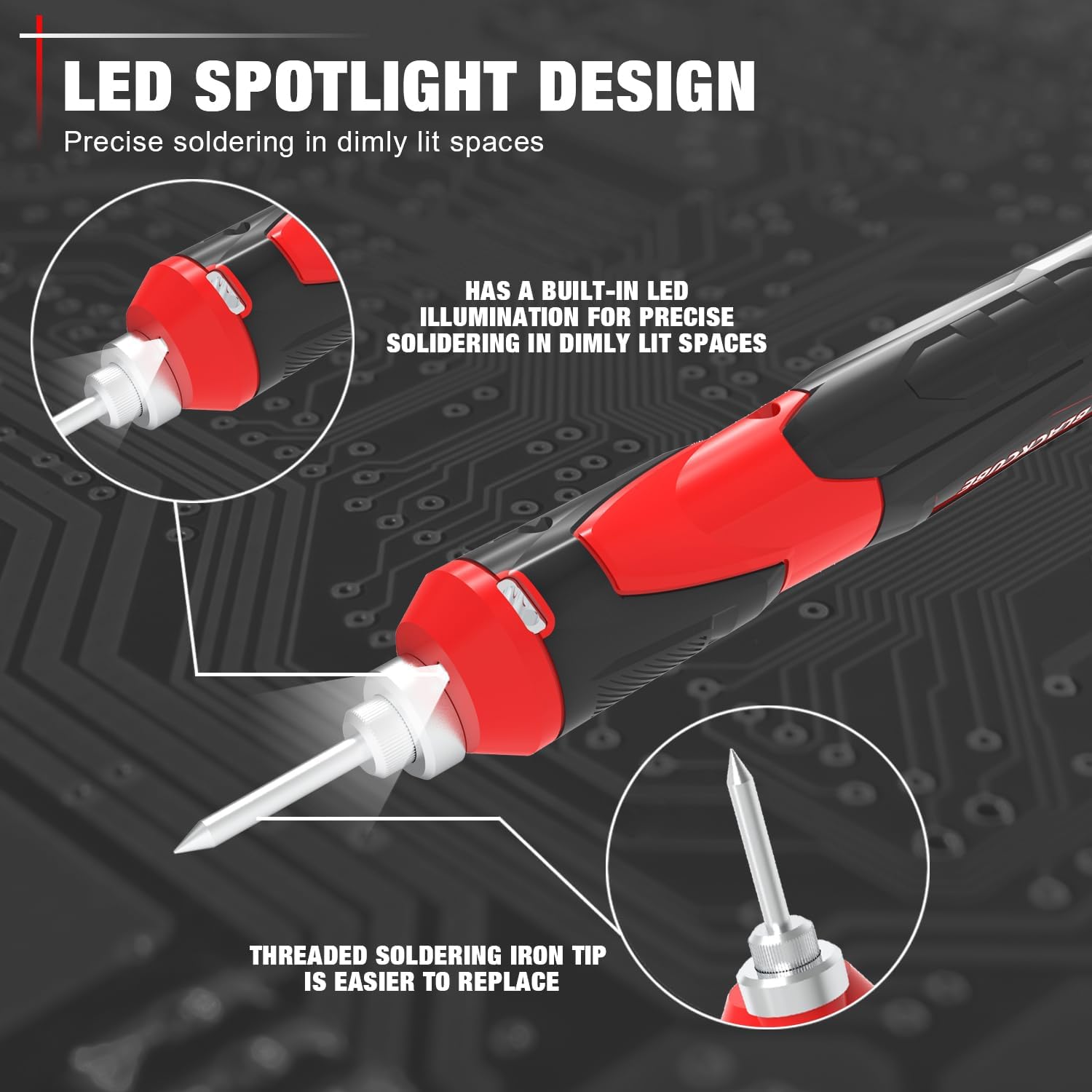 - LED SPOTLIGHT: Our soldering iron has a built-in LED illumination for precise soldering in dimly lit spaces, the large-angle lighting allows you to easily cope with dim light working environment
