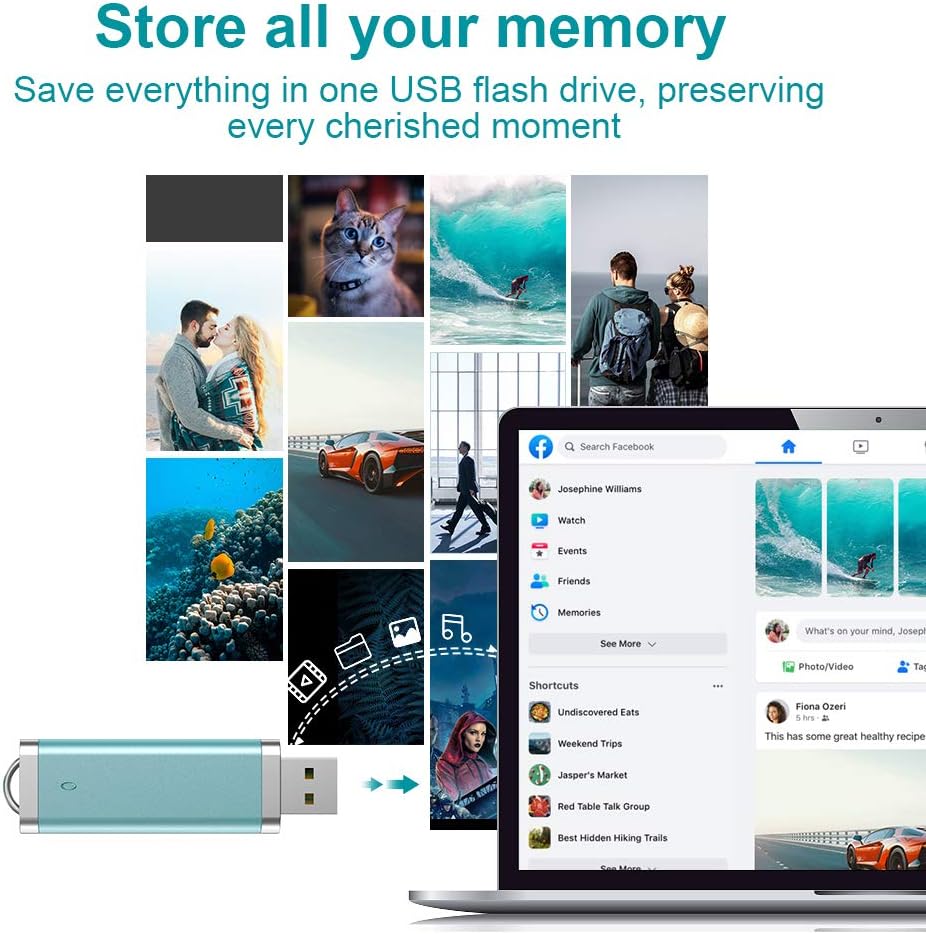 - Small Size with Big Use: USB flash drive with 64G capacity, meet your needs of daily use on work or travelling for photos,videos, files storage and transfer, could store 23 Hrs of Video (1080P/ 6Mbps), or 20,000 Photos (10MP/ 3 Mb), or 15,000 Songs (4 Mb)