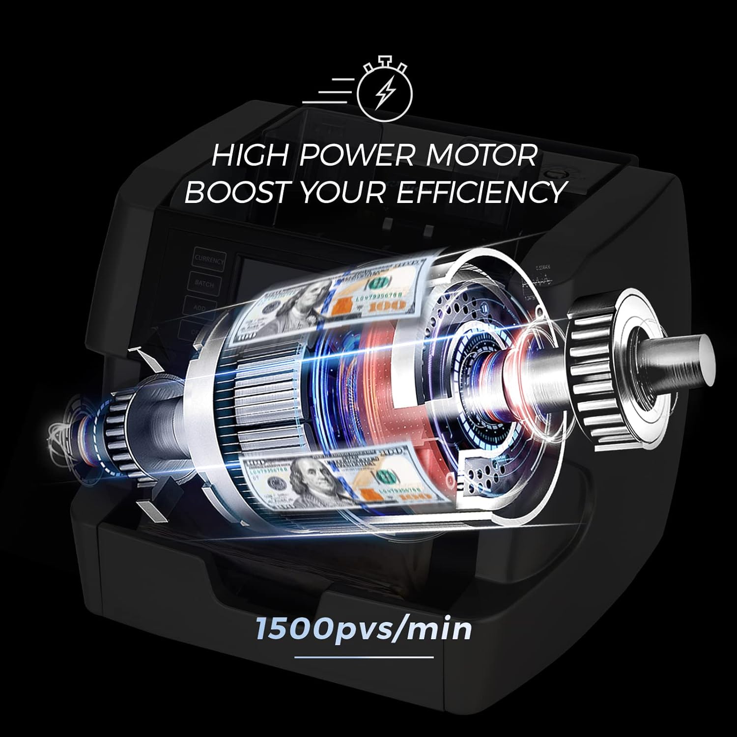 - ✅Money Counter Machine with CIS Technology: Equipped with one pair 200DPI Contact Image Sensors, scan and detect each counted bill like human eyes; Compared with universal 50DPI CIS or IR tube, the accuracy of money counting and value recognition is increased by 50%; No matter brand new, street quality, worn or slight ripped banknotes are well recognized.