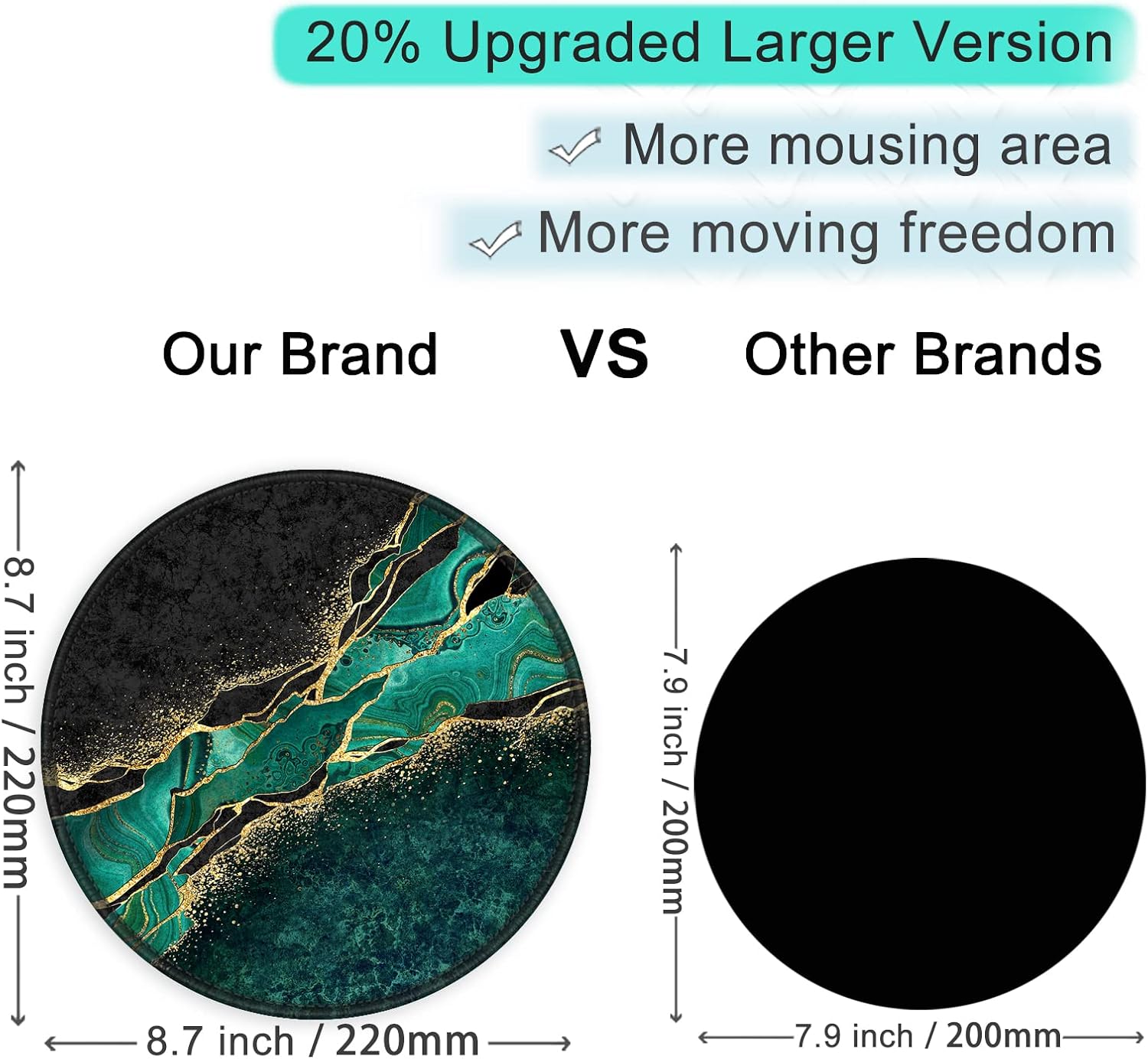 ITNRSIIET Round Mouse Pad with Stitched Edge Premium-Textured Waterproof Non-Slip Rubber Base Desktop Protection Mat Diameter 8.7 inches, Green Marble Gold