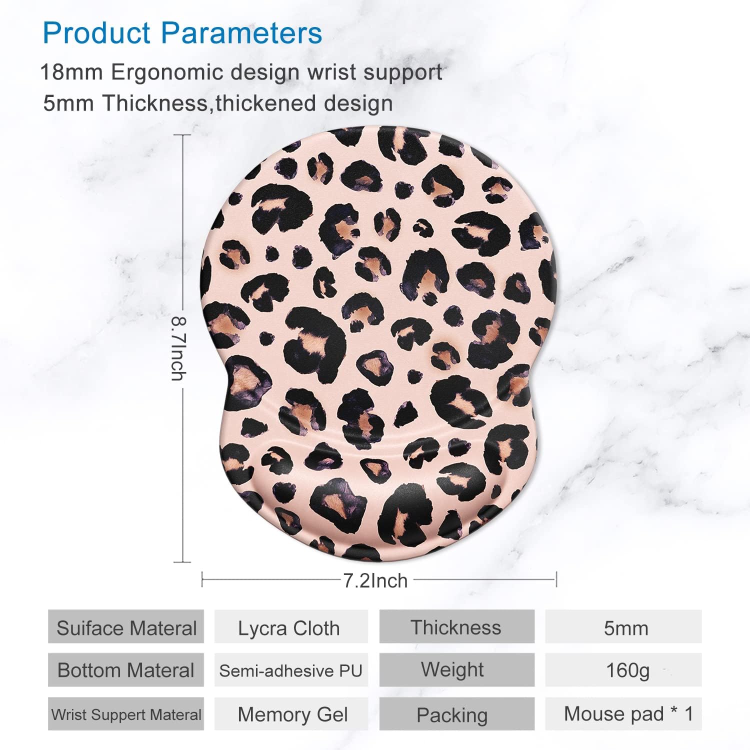 ITNRSIIET Ergonomic Mouse Pad with Gel Wrist Support Small Wrist Rest Smooth Surface Non-Slip PU Base Comfortable Office Supplies Pain Relief, 8.7 x 7.2 inches, Leopard Black Purple
