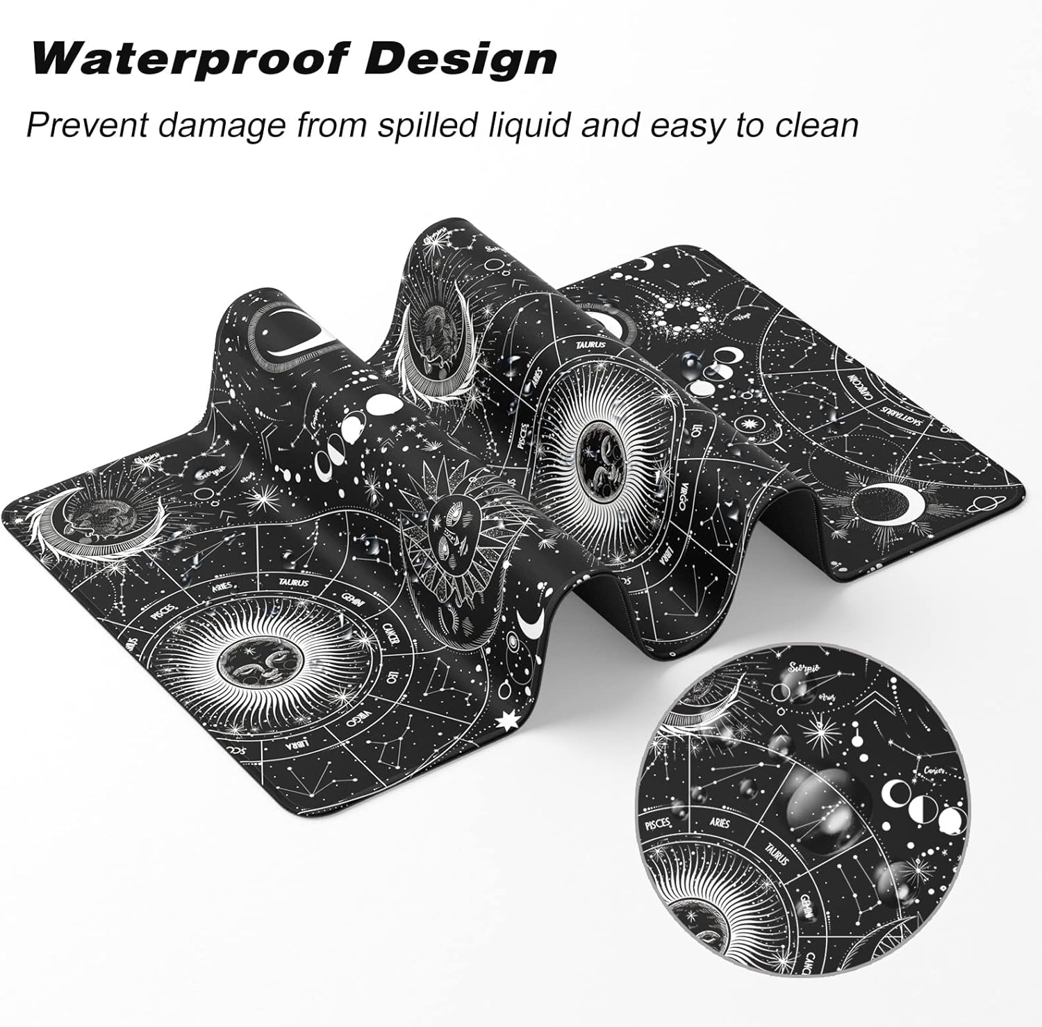 Extended Gaming Mouse Pad, XXL Large Desk Pad 30 x 14 Inch, Big Computer Keyboard Mousepad, Waterproof Mouse Mat with Stitched Edges and Non-Slip Base for Women Office Gaming, Sun Moon
