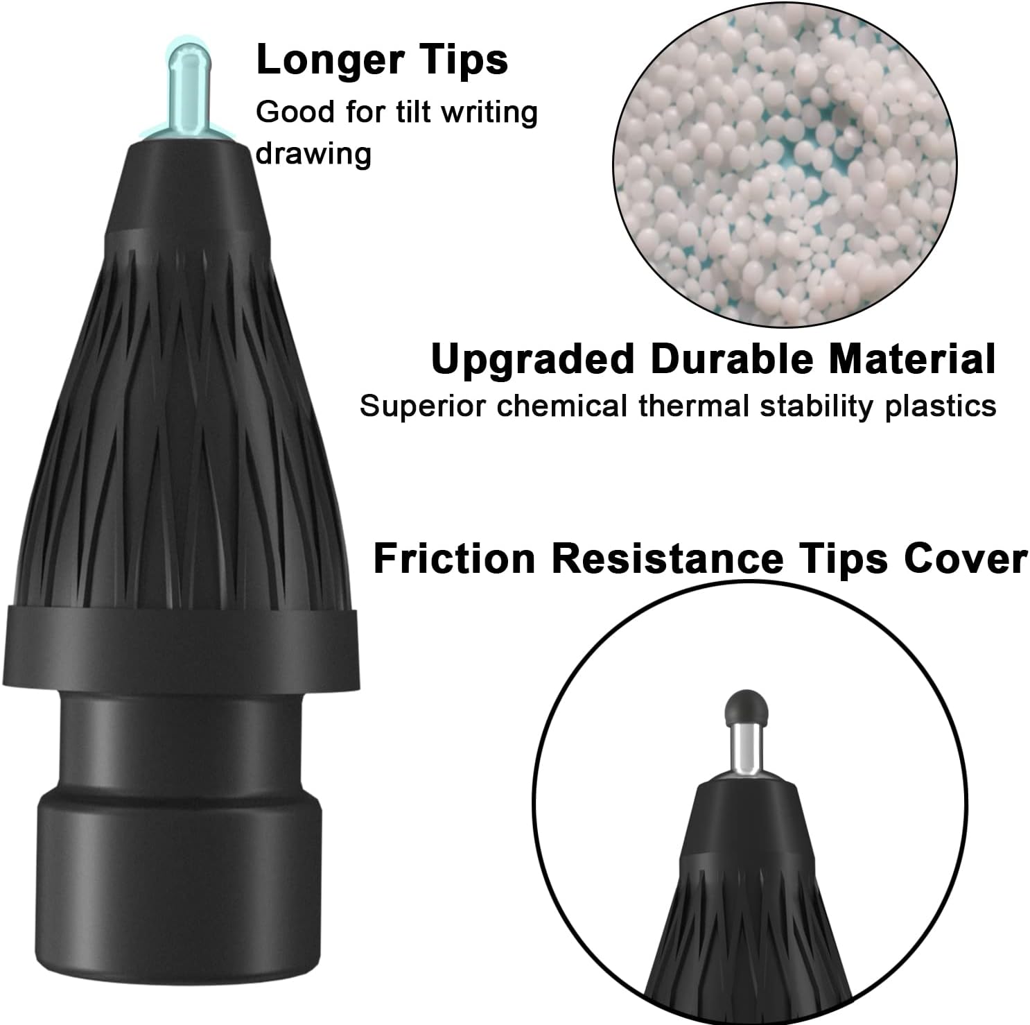 Upgraded Pencil Tips fits for Apple 2nd 1st Gen USB-C iPad Pro Pencil,No Wear Out Fine Point Apple Pen Tip &Noiseless Friction Nib Covers Set, Make iPencil 1 / Pencil 2 Work Like a Charm,Black