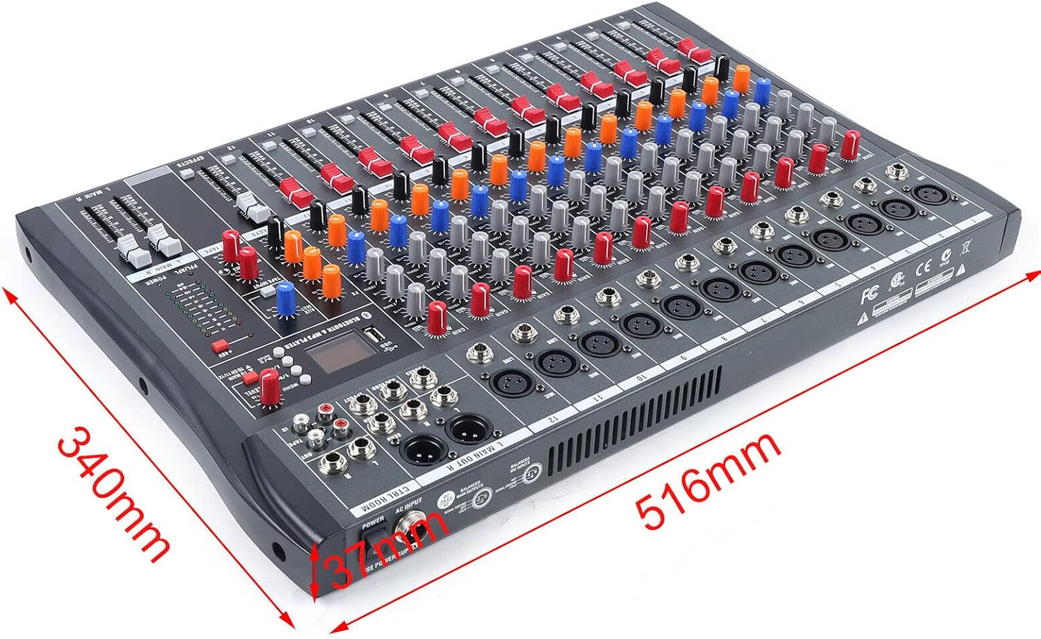 Pro 12 Channels Live Audio Mixer Bluetooth USB DJ Sound Mixing Console with 3 Stage Equalization Regulate 6 Modes Of Music for Family Ktv,Campus Speech,Meeting