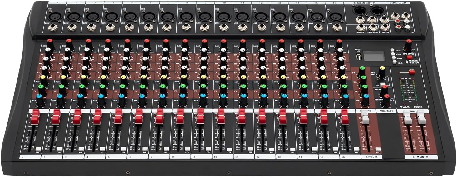 16 Channel Audio Mixer, Soundboard Mixing Console Sound Mixer DJ Sound Controller with USB & Bluetooth, Studio Audio Mixer for Professional and Beginners (16 Channel)